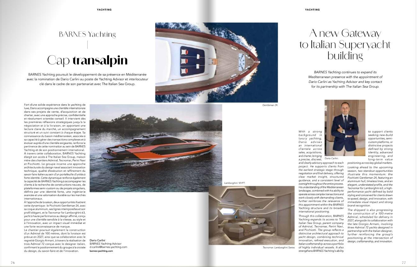 Рубриките Design, Art, Wine и Escapes допълват това потапяне в света на BARNES, в диалог с ключови направления като яхтинг индустрията, класическите автомобили чрез партньорството с CarJager, както и възраждането на емблематични модели.
