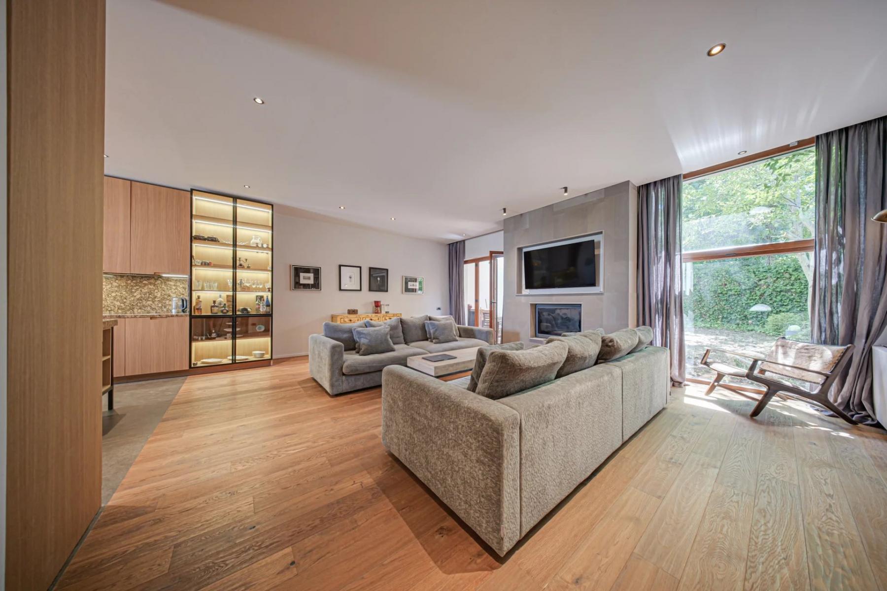 Интериорът е изграден с висок клас естествени материали и топли земни тонове, създаващи спокойна и хармонична атмосфера за живот.
