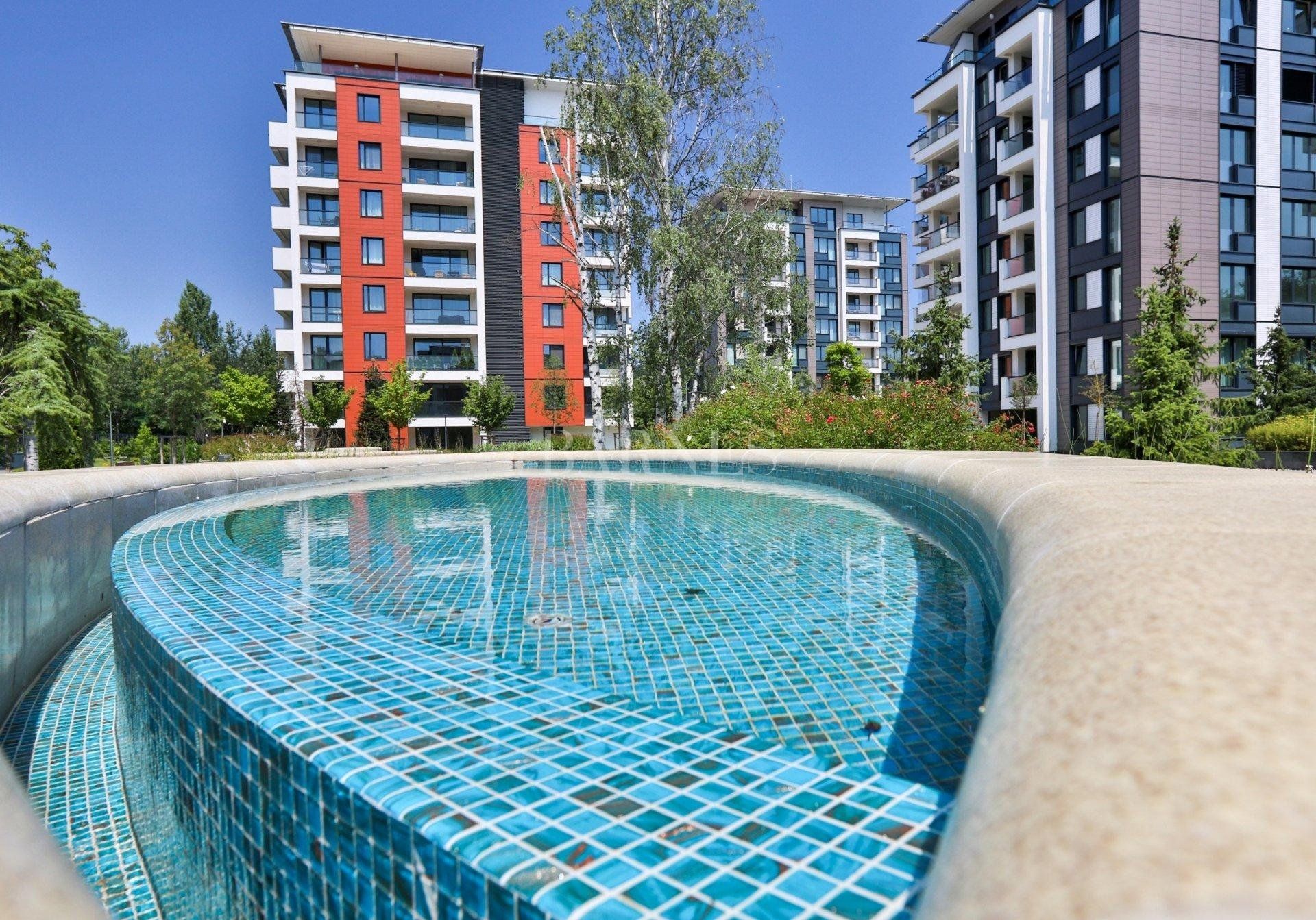 The complex has an indoor park located on 17 acres with water mirrors, alleys and ornamental plants, landscaping with tall and low trees, flowering and low shrubs with hedges. Two entrances with live security, video surveillance.