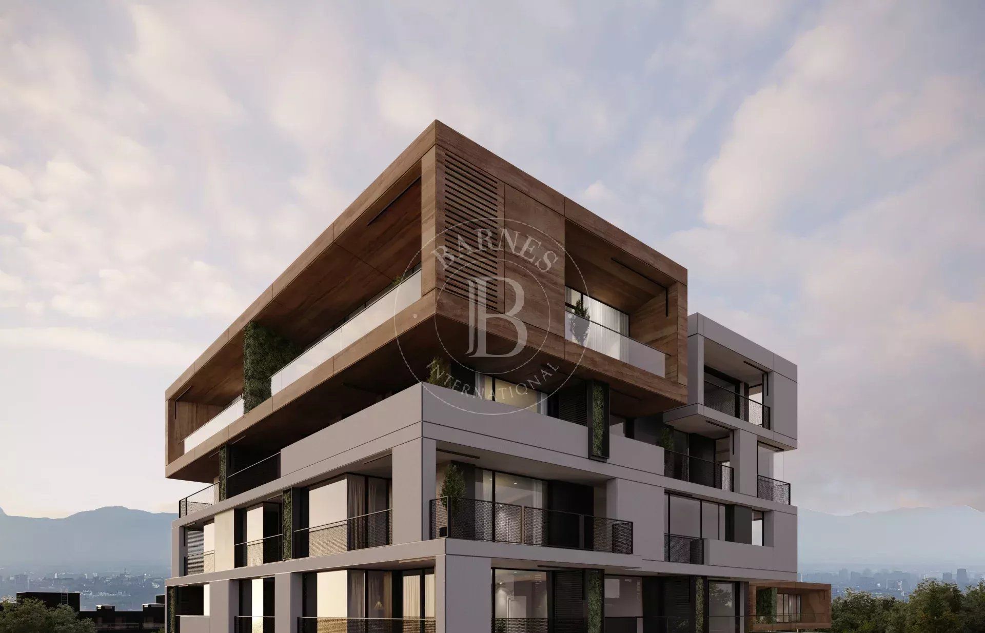 The concept of dynamics in the urban environment is sought in terms of volume, space, and facade. The project is a composition of 9-, 8-, 6-, and 4-story volumes in a common stepped structure, descending eastward toward the future Lozenez Park. Additional accents in the composition are the volumes of the penthouses as peculiar boxes filled with FUNDERMAX walnut HPL panels, which house luxury apartments with a higher ceiling height (3.30 m).