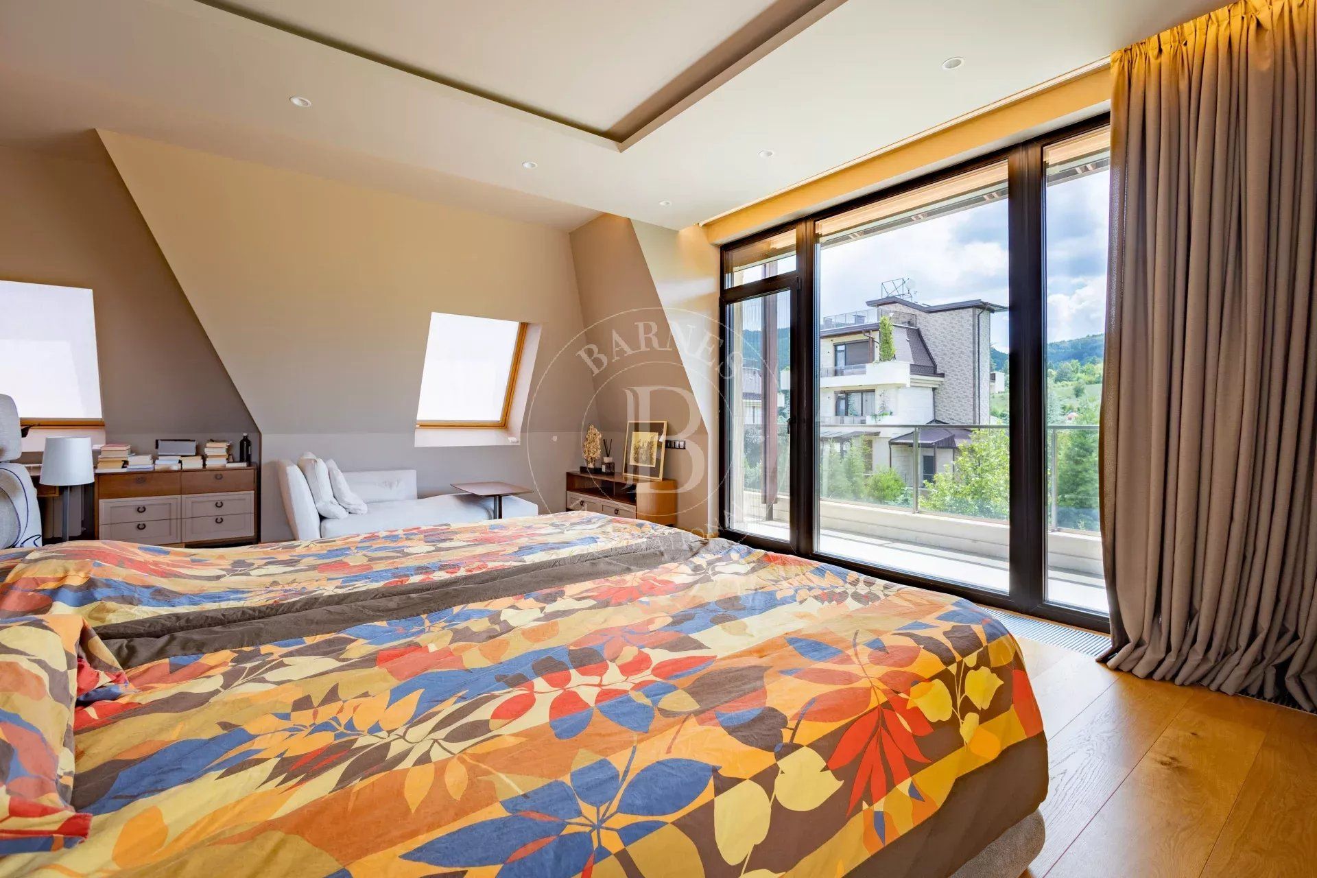 The bedroom has large windows with a spectacular panoramic view of Vitosha, its own bathroom with Jacuzzi and toilet, another separate toilet, and the dressing room has a terrace and views of Sofia.