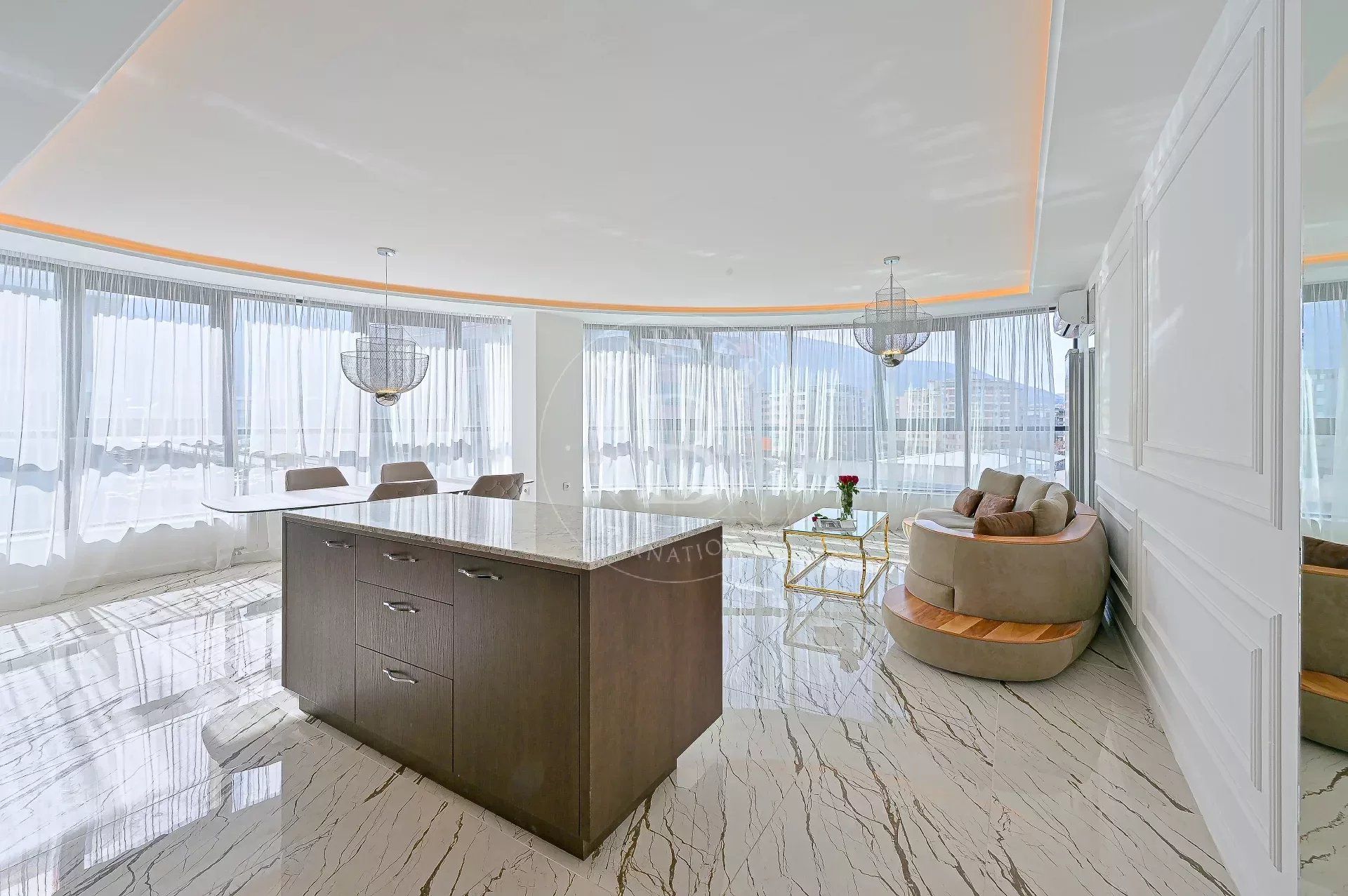 Апартаментът е обзаведен по дизайнерски проект, с много внимание към всеки детайл, подсигуряващ пълен комфорт на бъдещите наематели. Имотът ще отговори на всичките Ви нужди и изисквания. Интериорът е в топли тонове, много светлина и уют във всяко едно помещение.