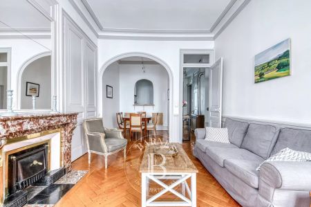 ЛИОН 2 - ЕН. Разположен на 1-ви етаж на стара сграда с асансьор, този обзаведен апартамент с площ от 66,38 м² се състои от входно антре, хол с трапезария и полуотворена оборудвана кухня.