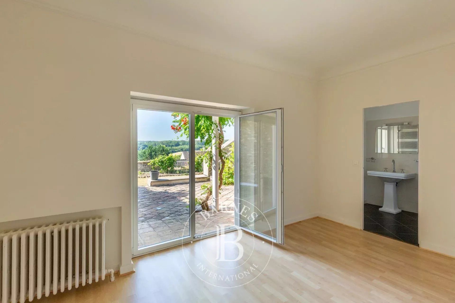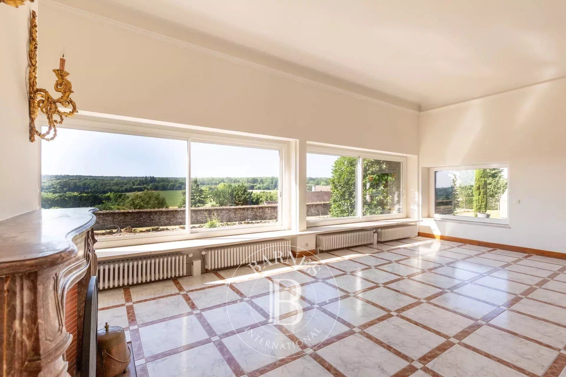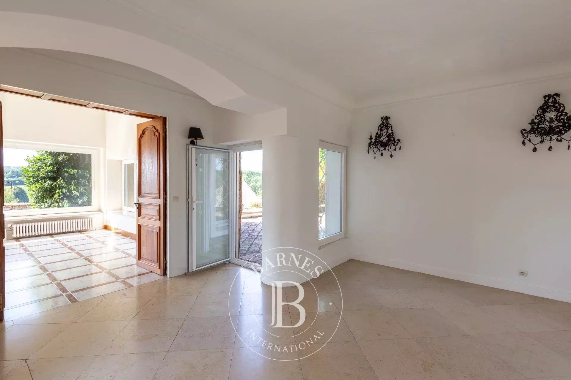 - Красиво входно антре, водещо към две приемни с големи еркерни прозорци, предлагащи гледка към градината и провинцията, оборудвана кухня с трапезария и задна кухня с врата за обслужване, както и трапезария с достъп до градината.