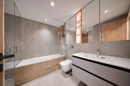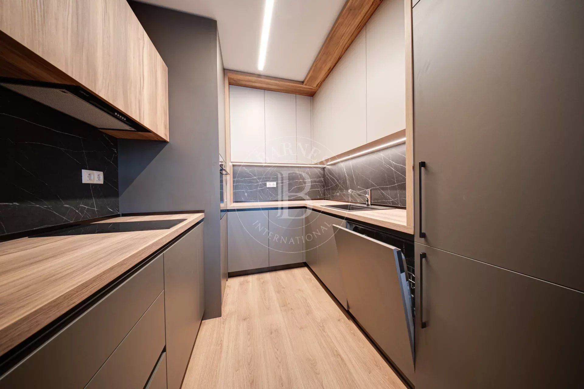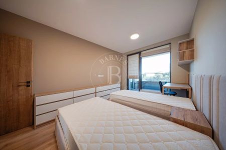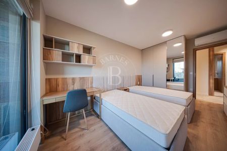 Апартаментът включва две комфортни спални – една мастър спалня, със собствена баня, и една гостна, подходяща и за офис или детска стая. Налични са две модерни бани, като в едната е монтирана вана за допълнителен релакс. В коридора е обособено перално помещение с пералня и сушилня.