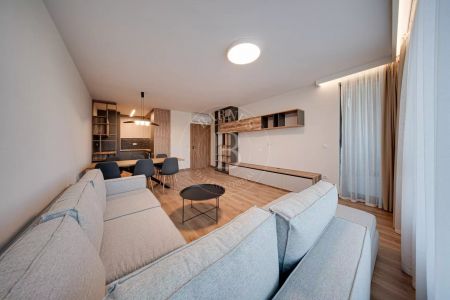 Жилището разполага с просторна и светла дневна, обединена с функционално организирана кухня и трапезария, обзаведена с всичко необходимо за ежедневен комфорт – вградена фурна, керамични котлони, аспиратор, съдомиялна и голям хладилник с фризер. Обособената трапезарна част и кът за почивка предразполагат както към уютни вечери със семейството, така и към посрещане на гости.