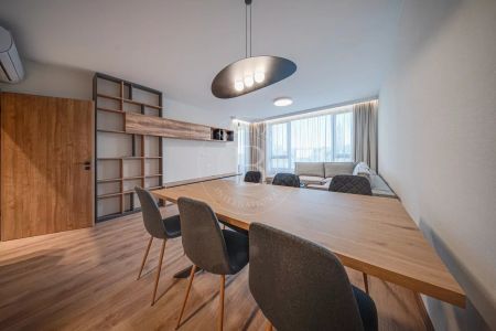 Предлагаме под наем луксозен, чисто нов тристаен апартамент с площ от 135 кв.м, разположен на четвърти етаж в престижна сграда с отлични общи части, контролиран достъп и видеонаблюдение. Имотът идеално съчетава удобство, стил и функционалност.