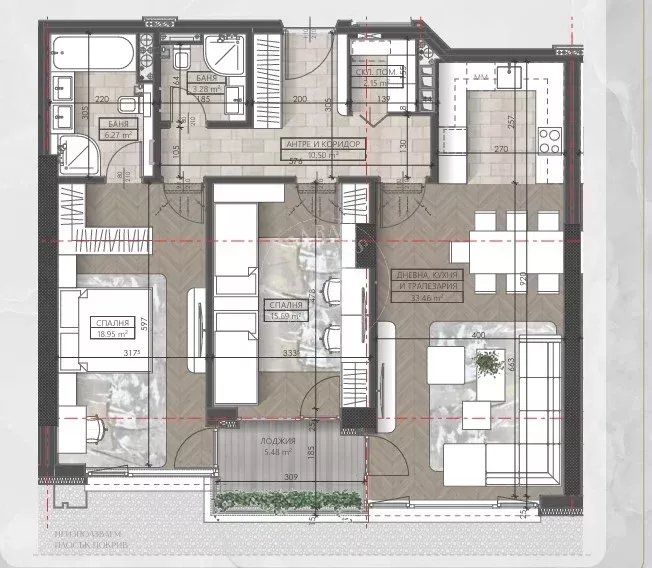 • Монолитна стоманобетонна конструкция, проектирана и изпълнена по най-съвременни стандарти за дълготрайност и устойчивост;