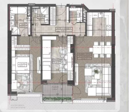 • Вътрешни преградни стени: комбинация от Wienerberger Porotherm 12 и гипскартон Knauf;