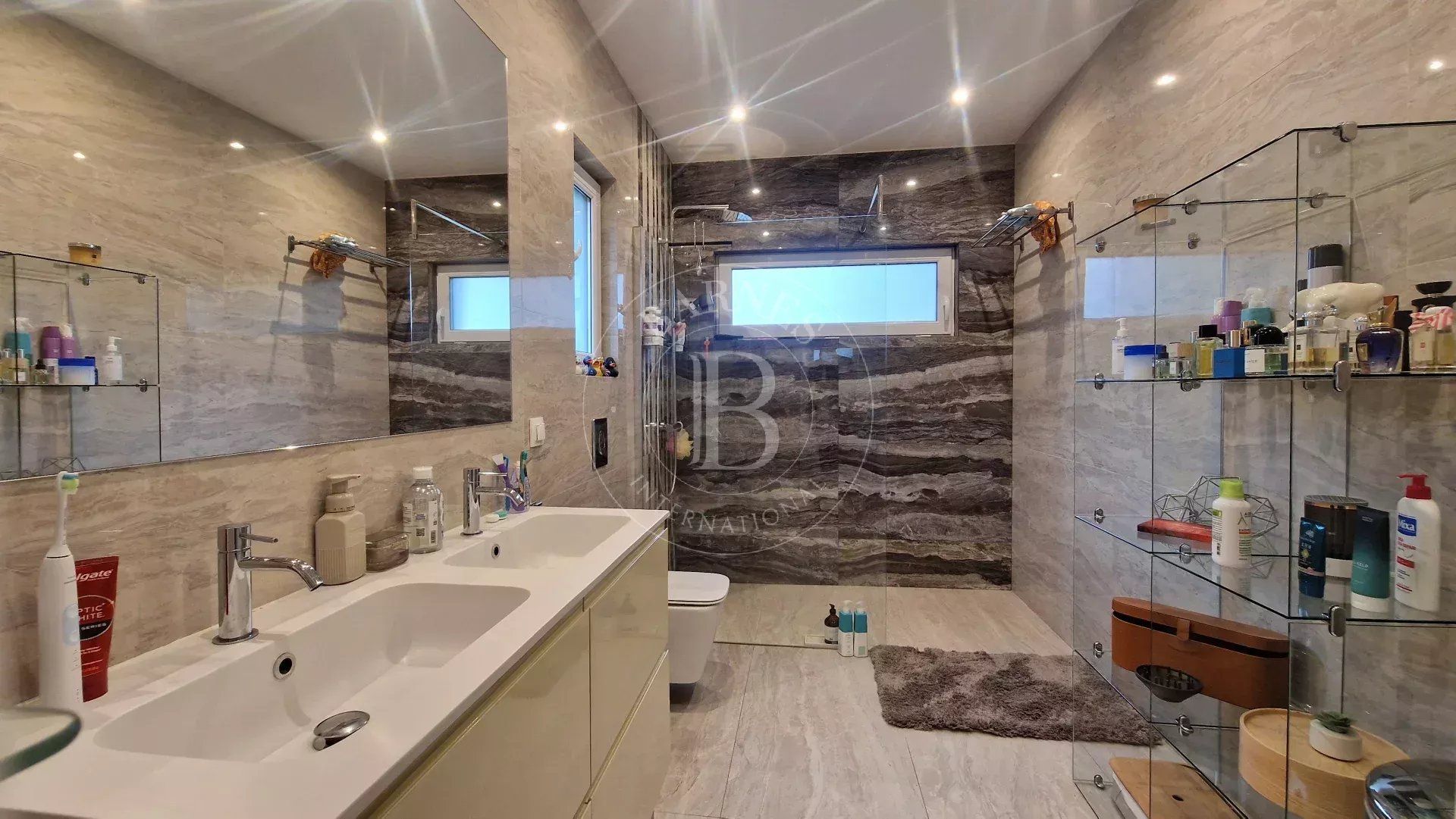 • Основна спалня: самостоятелна основна спалня с вграден гардероб (дрешник) и собствена баня с двойна мивка;