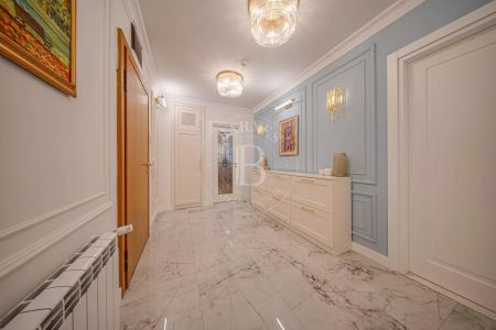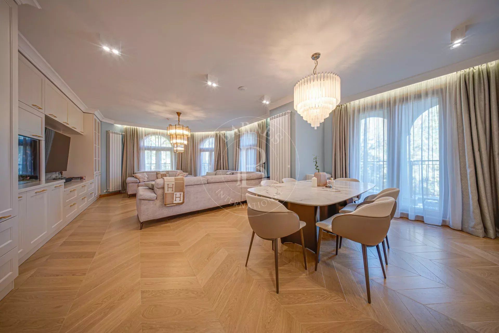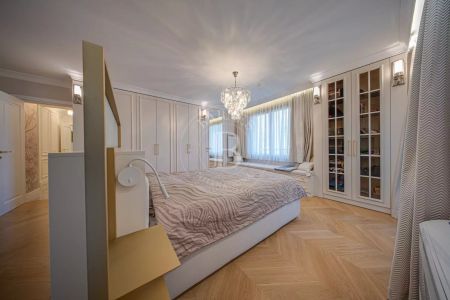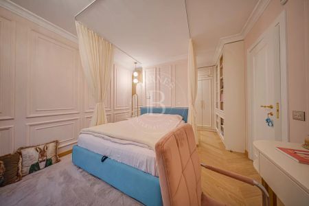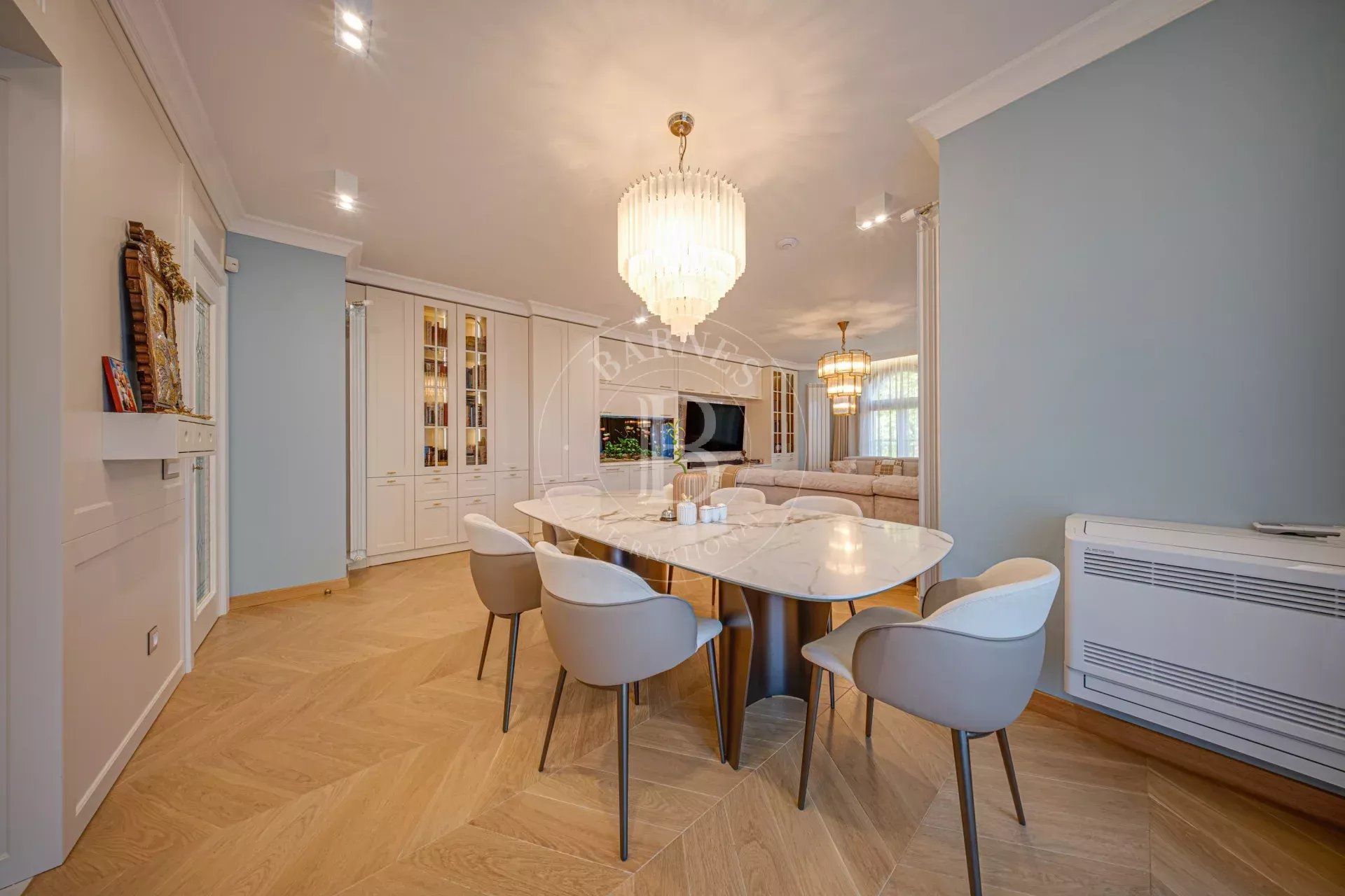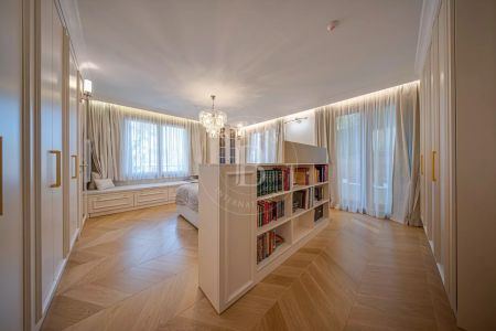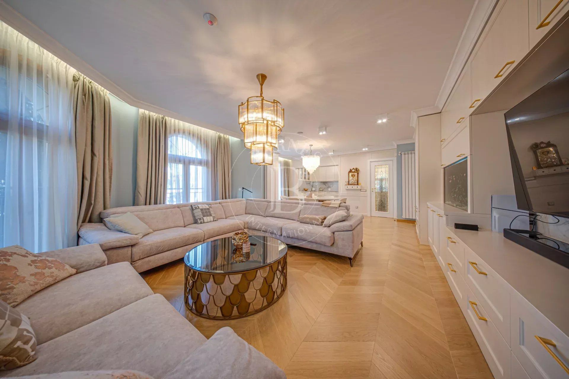 Жилището е завършено и обзаведено по дизайнерски проект с висок клас уреди и италиански мебели. Настилките са от естествен паркет и гранитогрес. Дневната предлага разкошен функционален диван за спокойни вечери с любимите хора, красив вграден аквариум и достатъчно пространство за всяка семейна библиотека. Кухнята е напълно оборудвана, а изненадващият акцент на високия прозорец внася допълнителна светлина и усещане за къща. Във всяка от спалните пространството е оптимално разпределено така, че да осигурява достатъчно място за съхранение на личните вещи на всеки член на семейството.