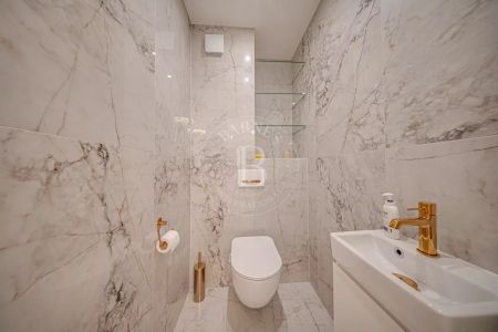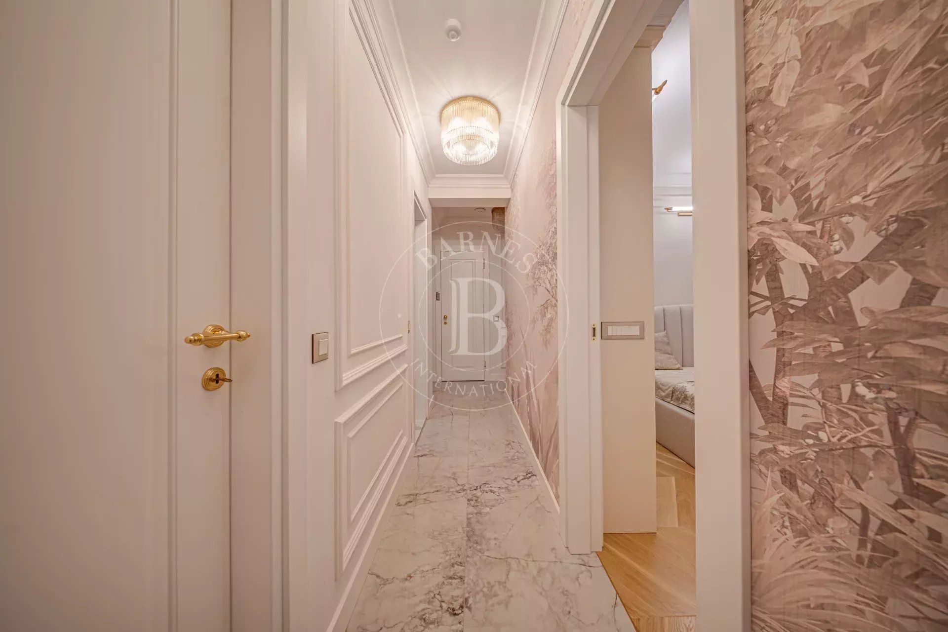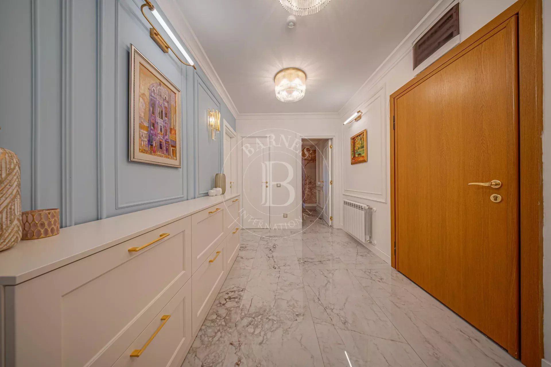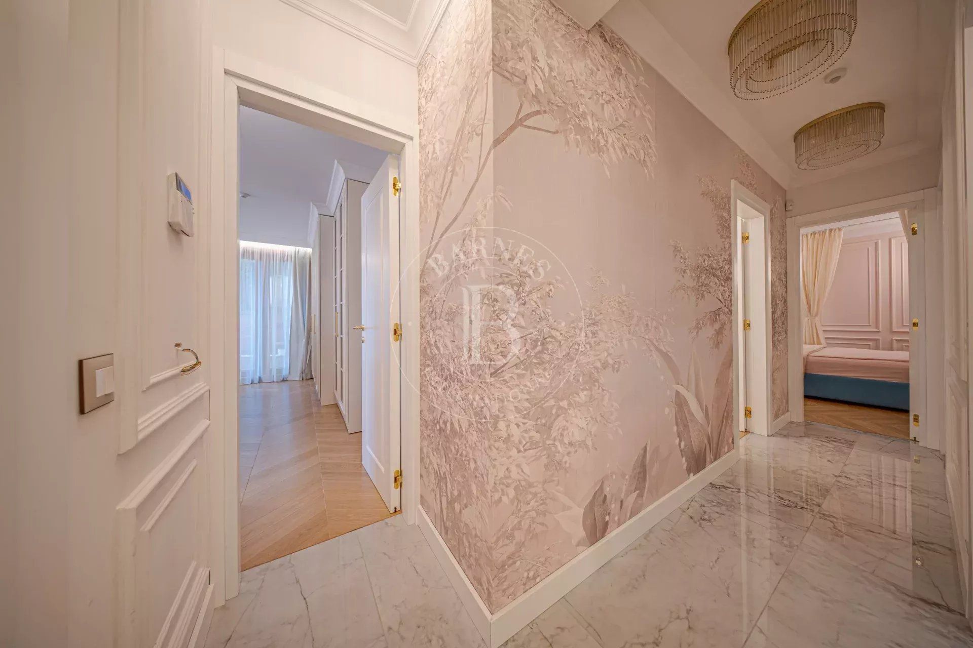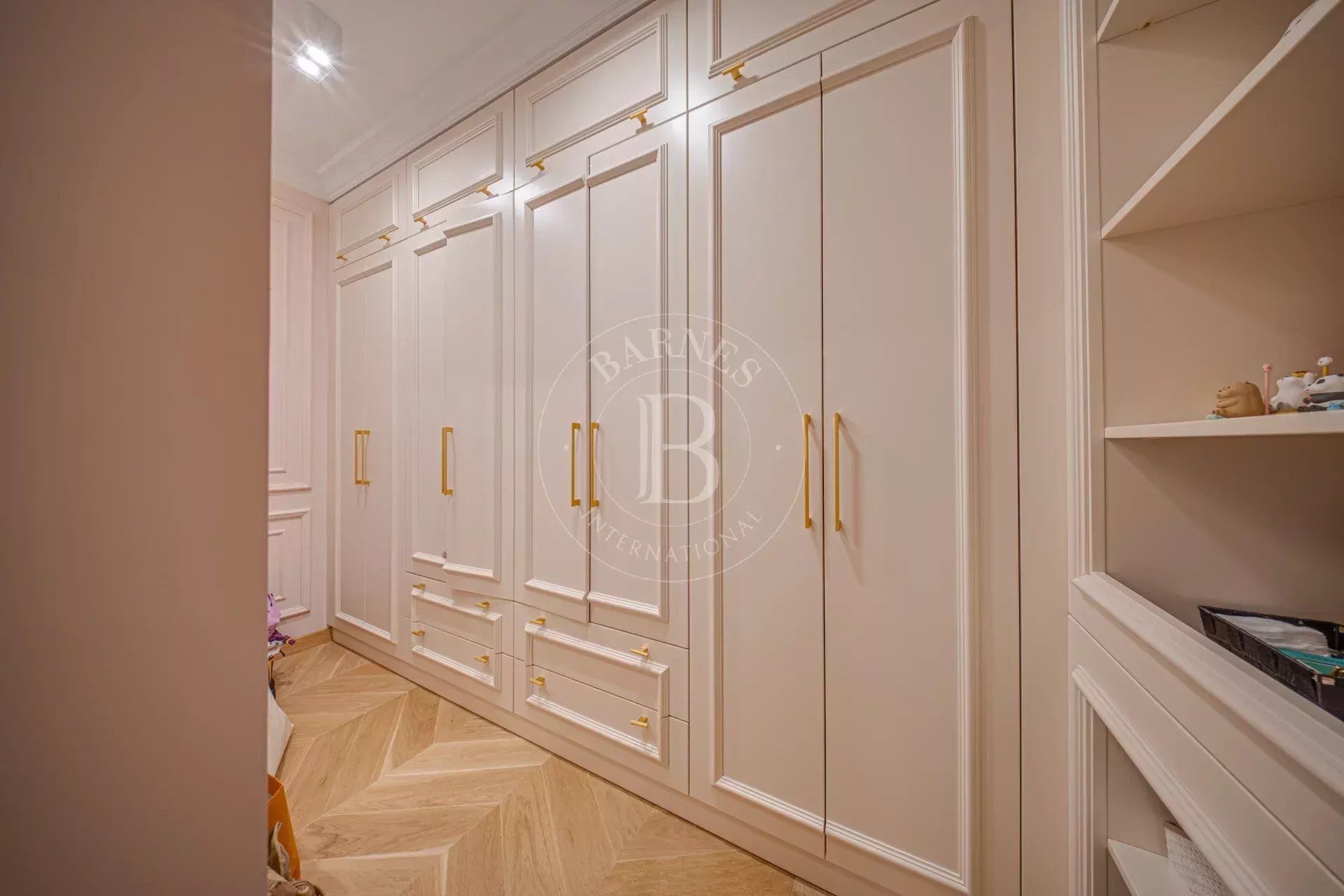 Жилището е завършено и обзаведено по дизайнерски проект с висок клас уреди и италиански мебели. Настилките са от естествен паркет и гранитогрес. Дневната предлага разкошен функционален диван за спокойни вечери с любимите хора, красив вграден аквариум и достатъчно пространство за всяка семейна библиотека. Кухнята е напълно оборудвана, а изненадващият акцент на високия прозорец внася допълнителна светлина и усещане за къща. Във всяка от спалните пространството е оптимално разпределено така, че да осигурява достатъчно място за съхранение на личните вещи на всеки член на семейството.
