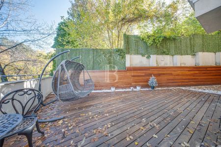Имотът се намира на втори жилищен етаж и предлага красива гледка към София и Витоша. Едно от разкошните предимства на жилището е наличието на уединен индивидуален двор (64,71 кв.м), който е покрит с естествен декинг и дава възможност за целогодишно ползване.
