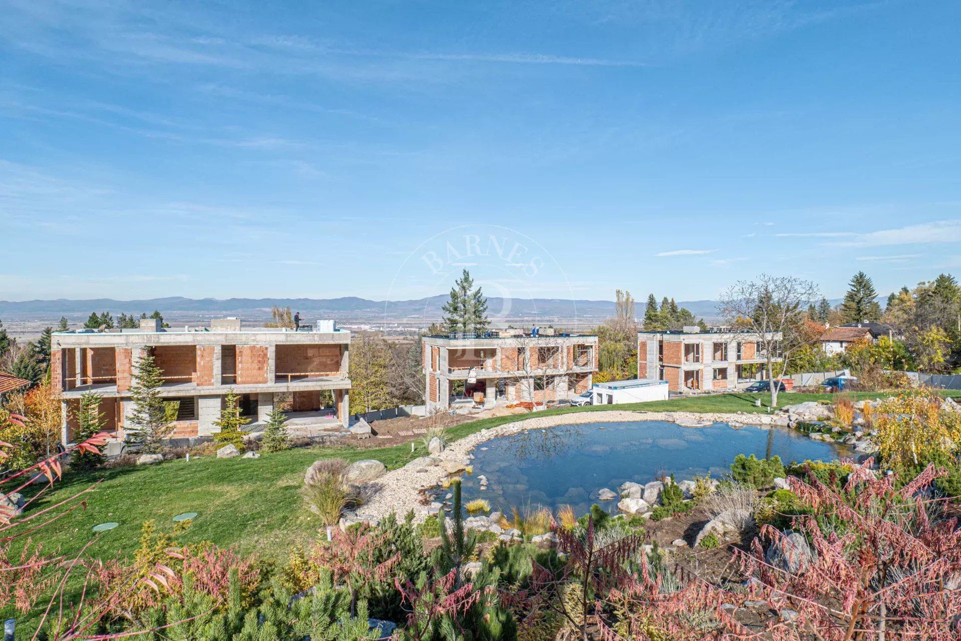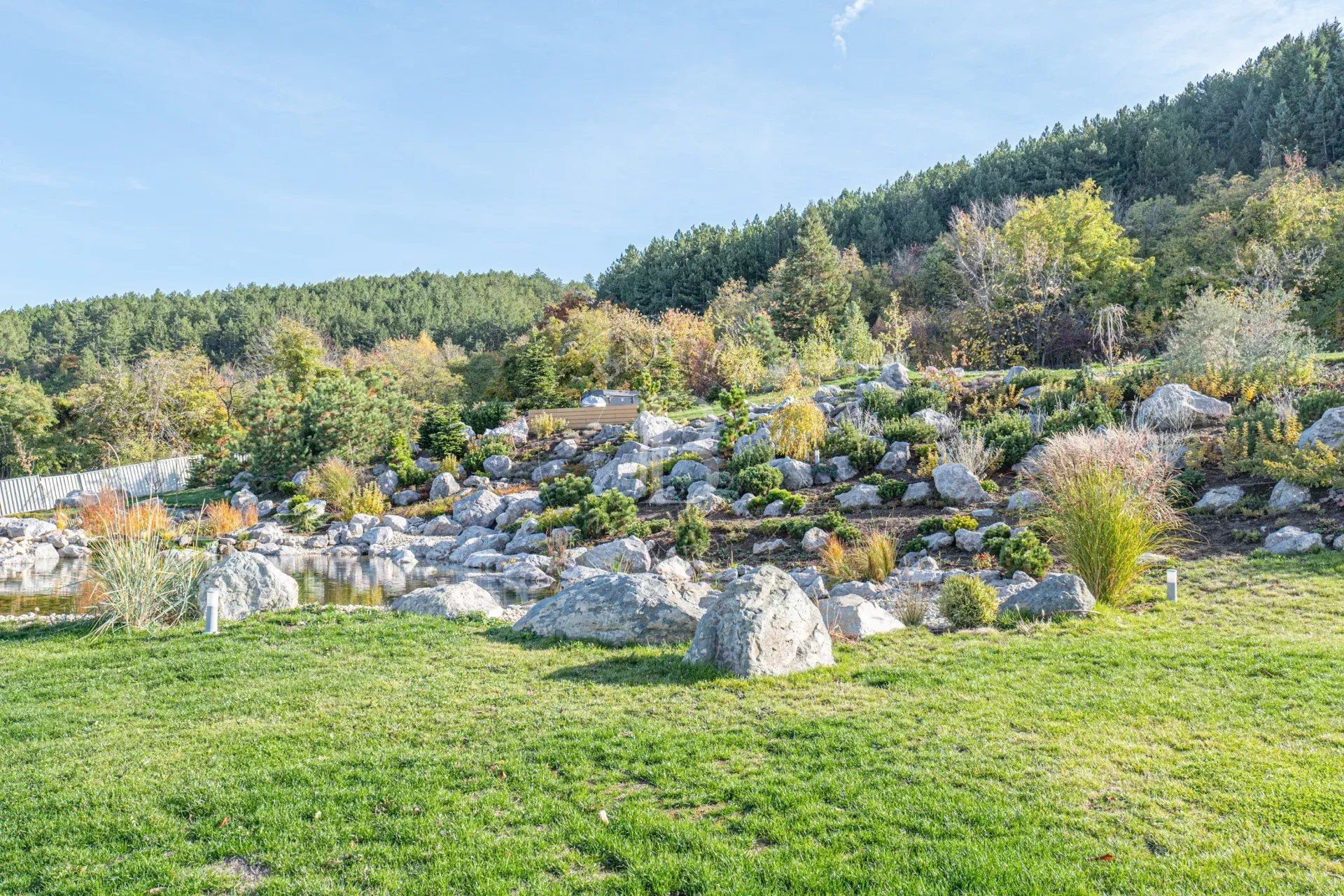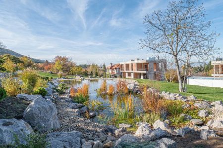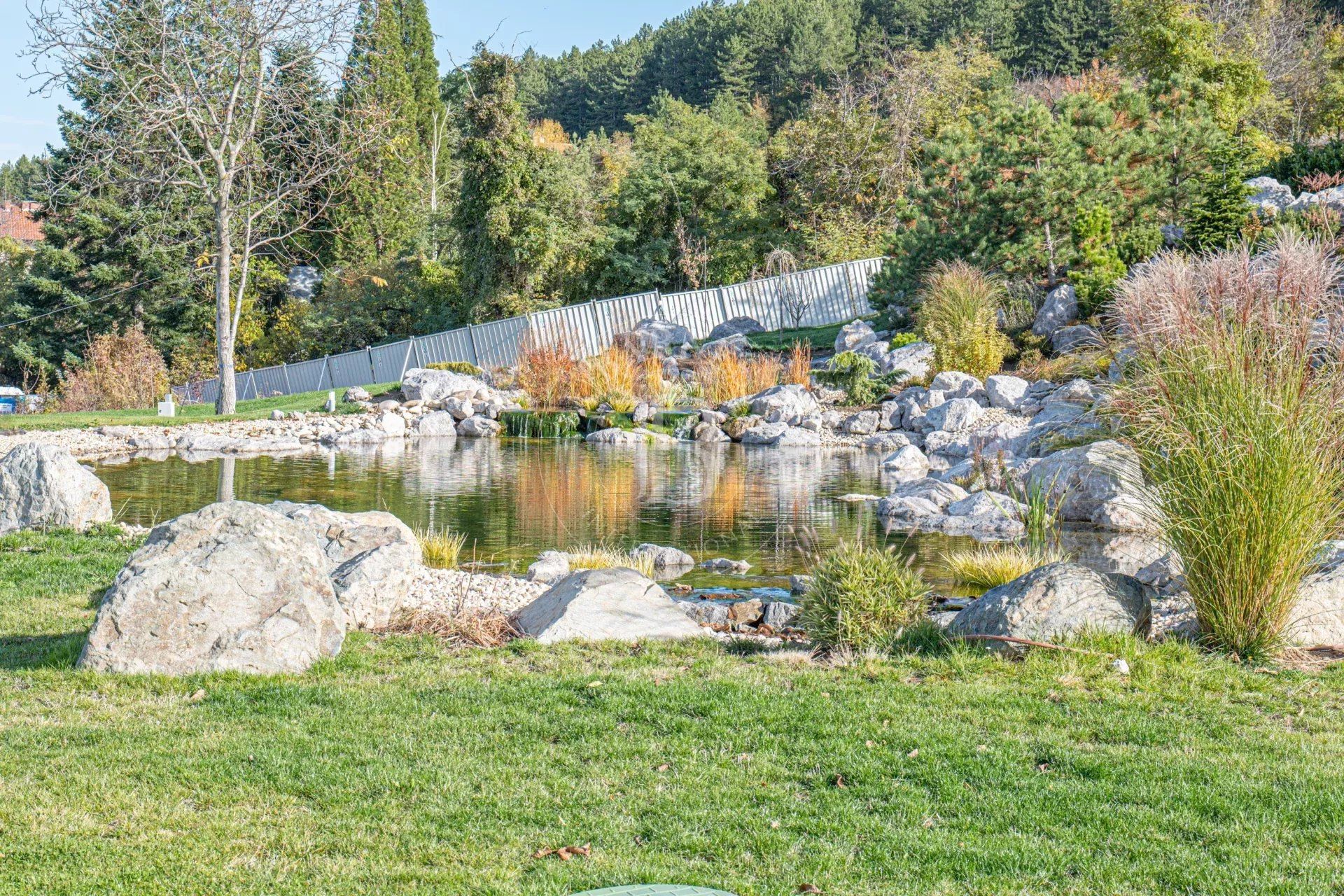 Представяме изключителен имот – нова къща, разположена сред прекрасна паркова среда от 5 декара в с. Лозен, до София. Имотът е част от елегантен затворен комплекс, състоящ се от три самостоятелни къщи, всяка със собствен двор и достъп до общите зелени площи. Комплексът предлага уникална атмосфера на спокойствие и природа – с езеро, малка река, водопад, джакузи и богато озеленяване, което осигурява усещане за релакс и комфорт през цялата година. Разположението до гората гарантира чист въздух и красива гледка, а в непосредствена близост се намират всички удобства, необходими за ежедневието – магазини, транспорт, училище и др.