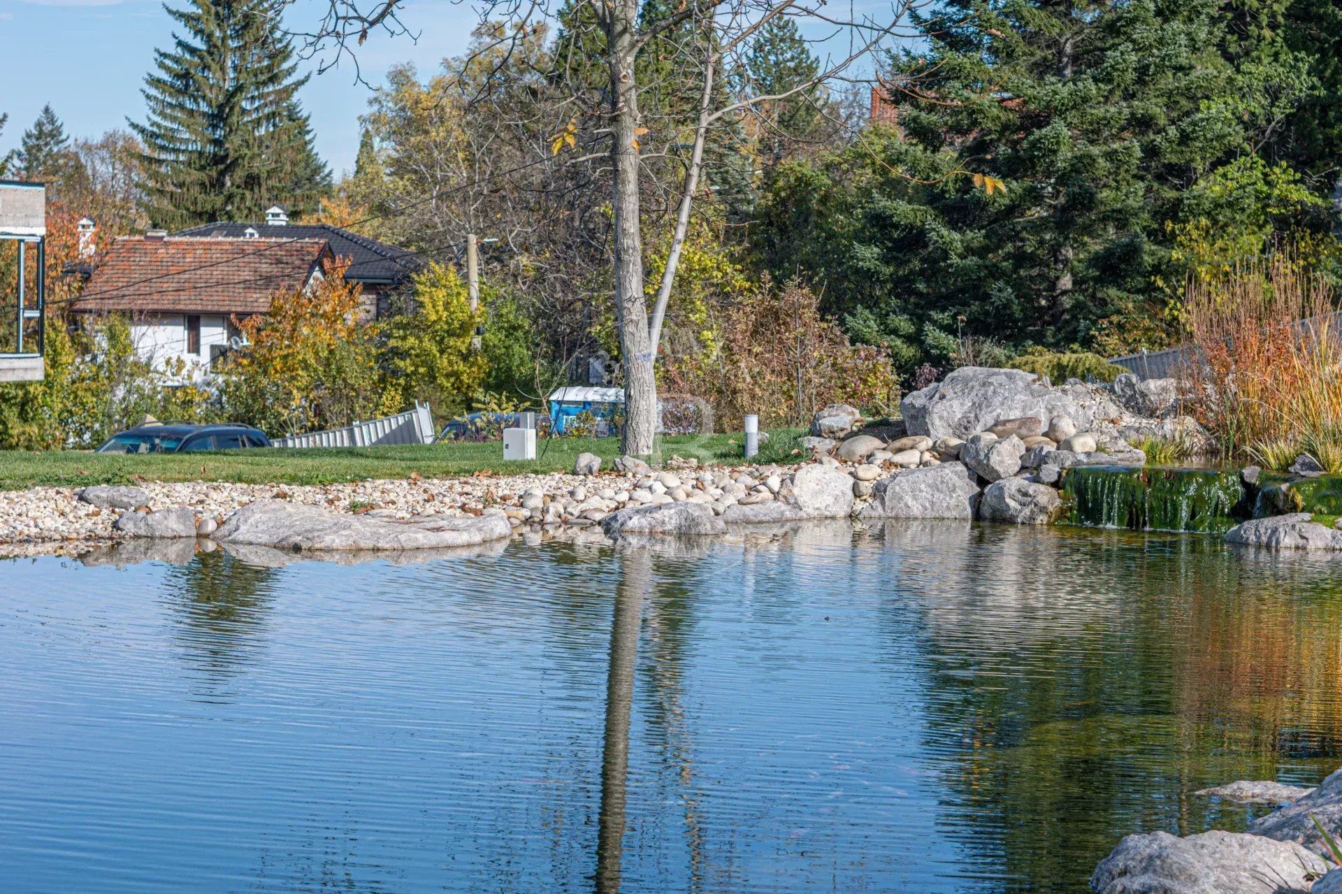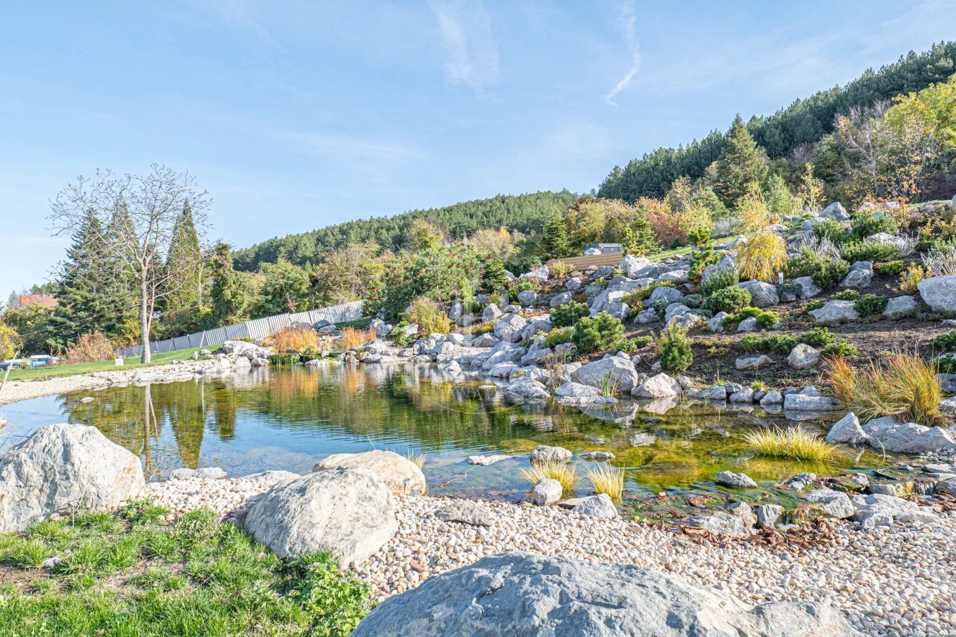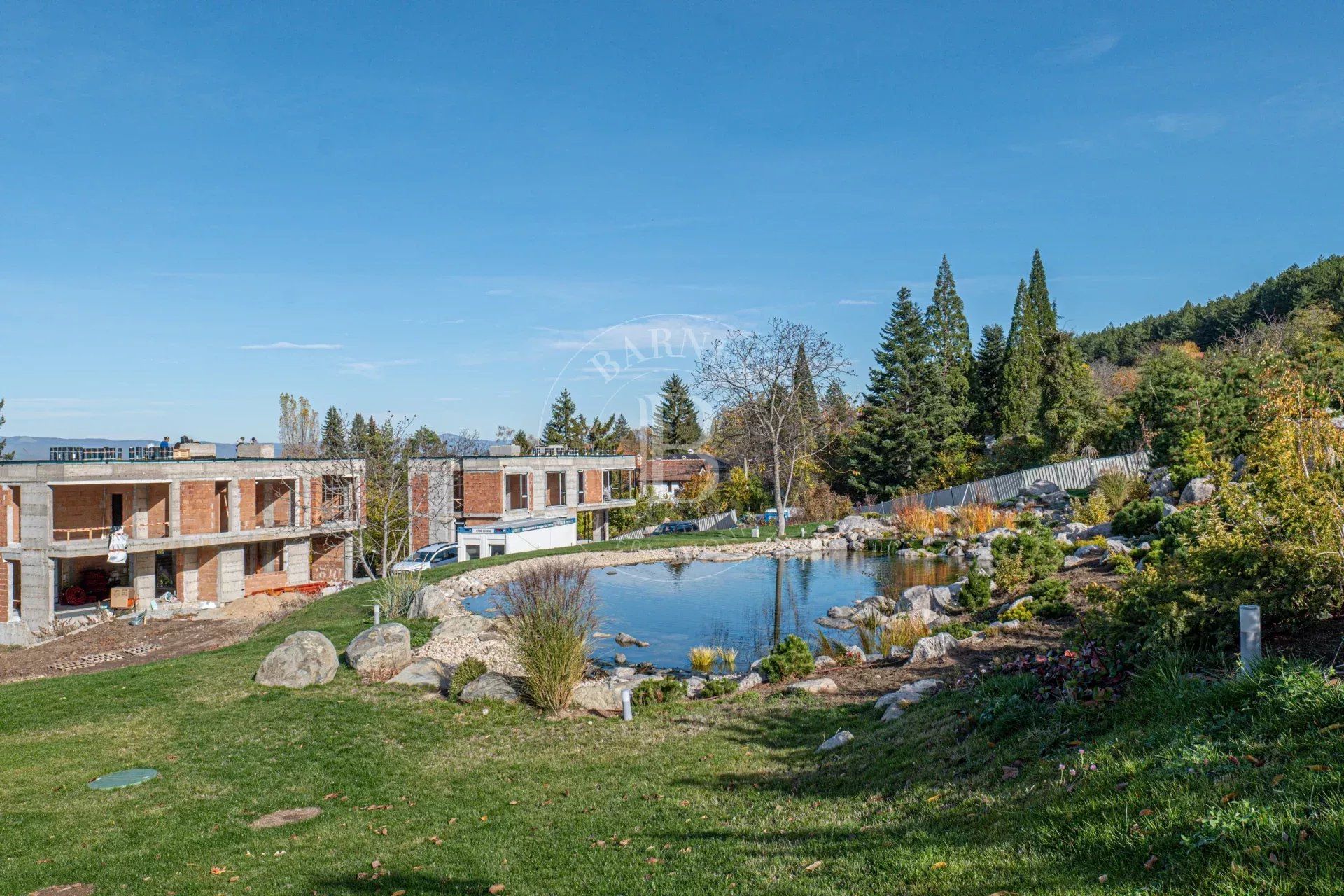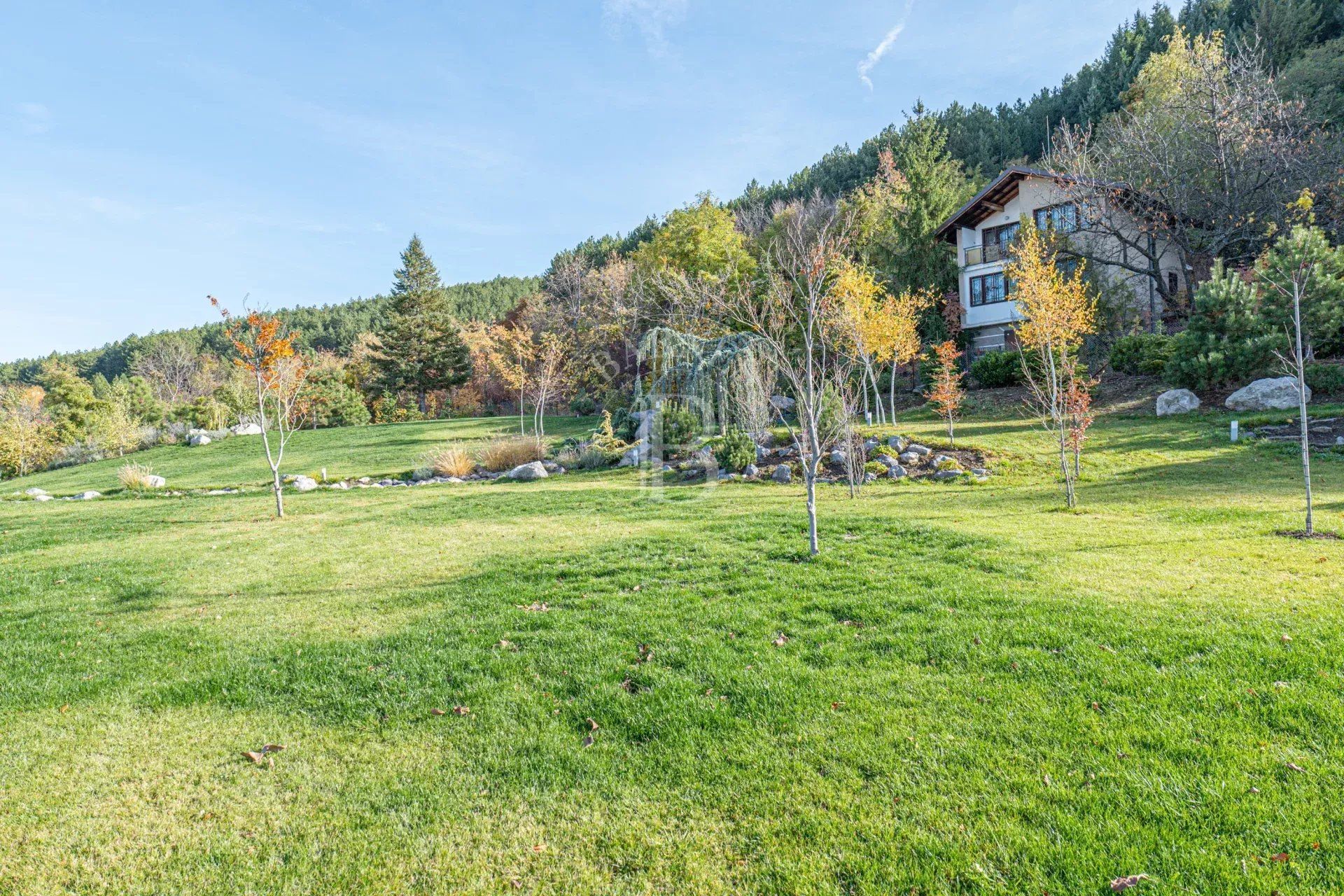 Представяме изключителен имот – нова къща, разположена сред прекрасна паркова среда от 5 декара в с. Лозен, до София. Имотът е част от елегантен затворен комплекс, състоящ се от три самостоятелни къщи, всяка със собствен двор и достъп до общите зелени площи. Комплексът предлага уникална атмосфера на спокойствие и природа – с езеро, малка река, водопад, джакузи и богато озеленяване, което осигурява усещане за релакс и комфорт през цялата година. Разположението до гората гарантира чист въздух и красива гледка, а в непосредствена близост се намират всички удобства, необходими за ежедневието – магазини, транспорт, училище и др.