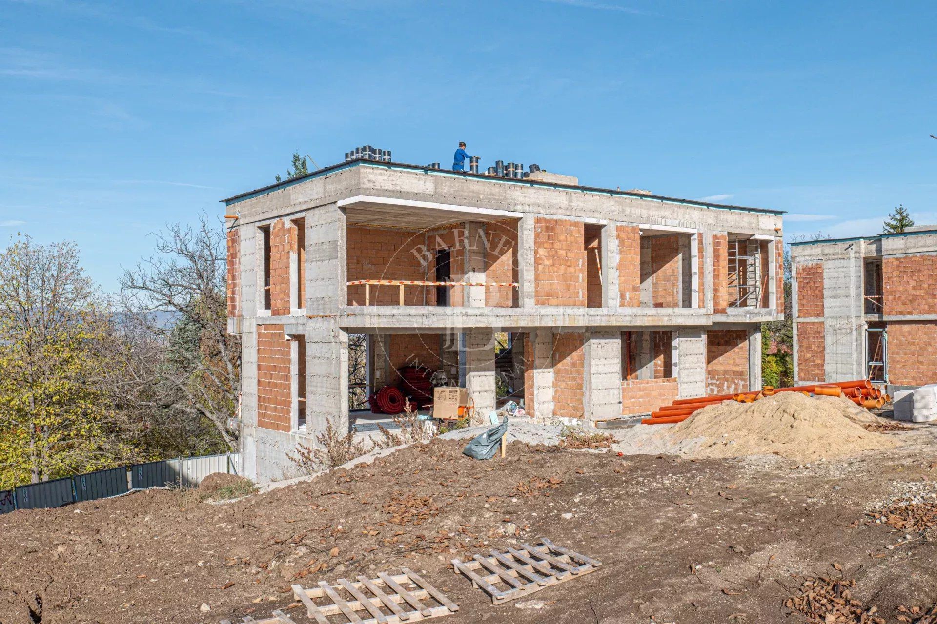 • Ниво 2: мастър спалня (28.47 кв. м) с голям дрешник (18.48 кв. м) и баня с тоалетна (15.91 кв. м) и сауна, втора спалня с дрешник и баня с тоалетна, трета спалня с баня с тоалетна и мокро помещение.