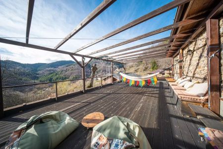 зона за храненеза 20 човека и гледка към планината,бар с люлки/хамаци