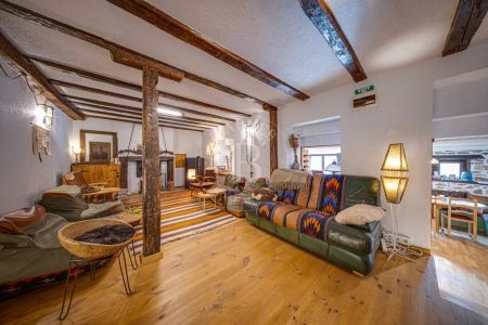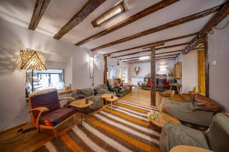 Това пространство е сърцето на комплекса – едно голямо, артистично отворено помещение с високи дървени греди, панорамни прозорци към южния склон и уникална атмосфера, съчетаваща история и съвременен дизайн.