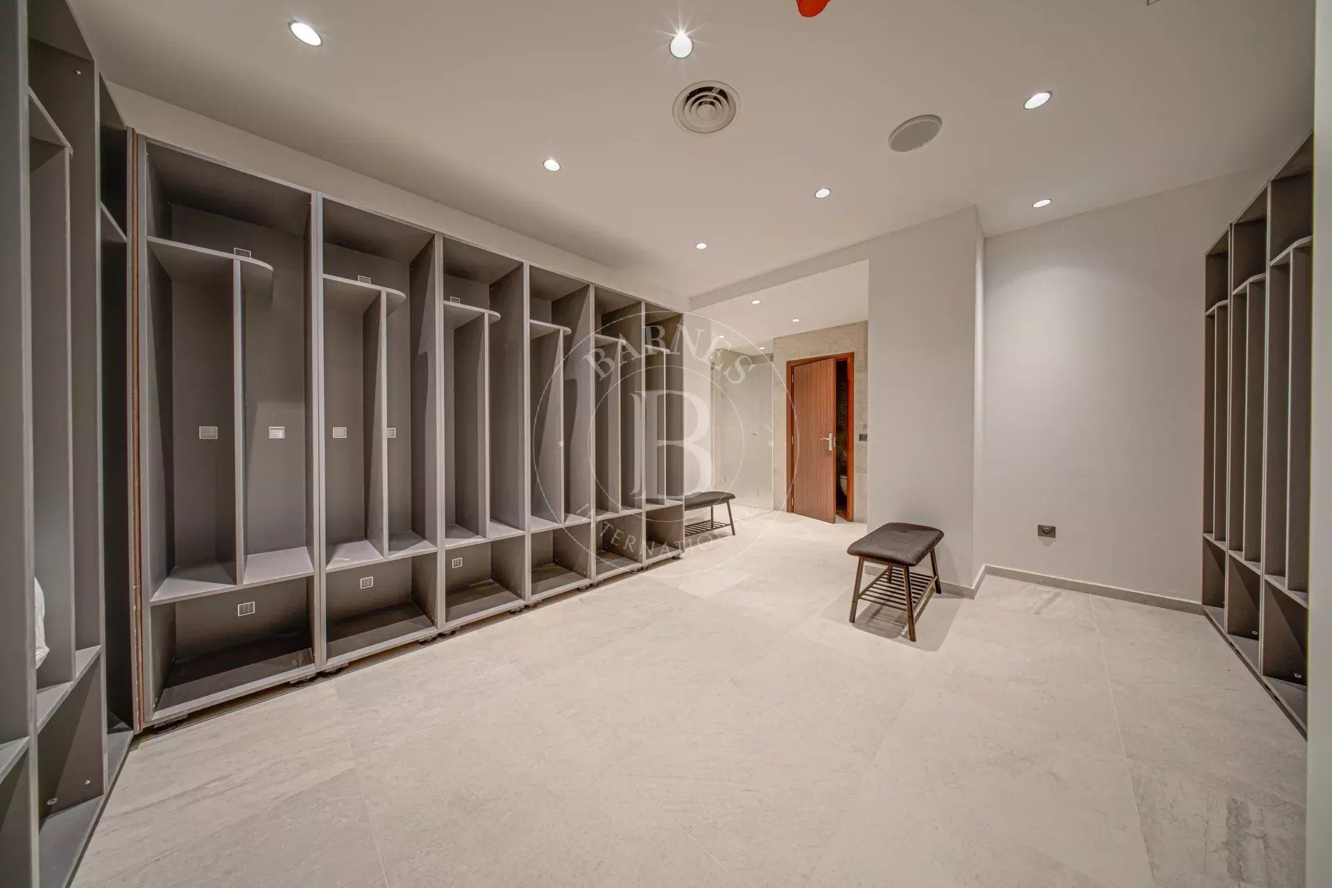 Първото ниво е изградено като ядрото на преживяването – пространство, в което водата, светлината и тишината работят заедно. Голям закрит плувен басейн с естествено осветление, студен басейн, джакузи и водни елементи оформят среда за възстановяване и плавно движение. Термалната зона – финландска сауна, инфрачервена сауна и парна баня – е интегрирана така, че да не доминира, а да допълва. Съблекалните, санитарните помещения и душовете са решени с прецизност, която остава незабележима именно защото всичко функционира без усилие.
