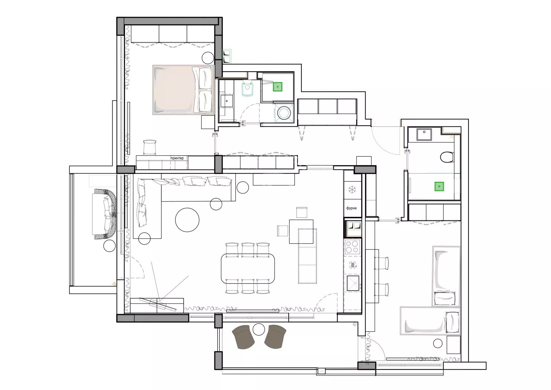 Жилището е с южно и западно изложение, което осигурява обилна естествена светлина през целия ден. Пространството е добре разпределено и предлага комфорт и функционалност за ежедневието. За апартамента е изготвен реален дизайнерски проект, който е включен в цената и може да бъде адаптиран и реализиран спрямо предпочитанията на бъдещите собственици.