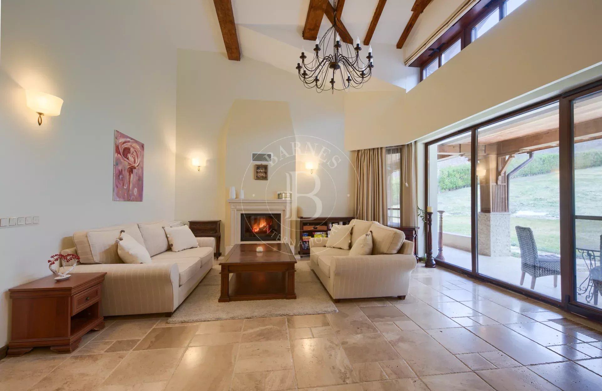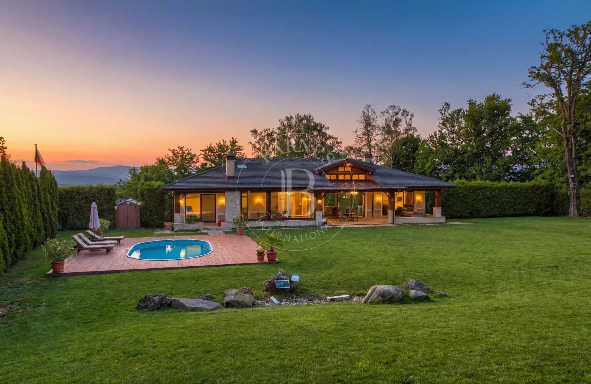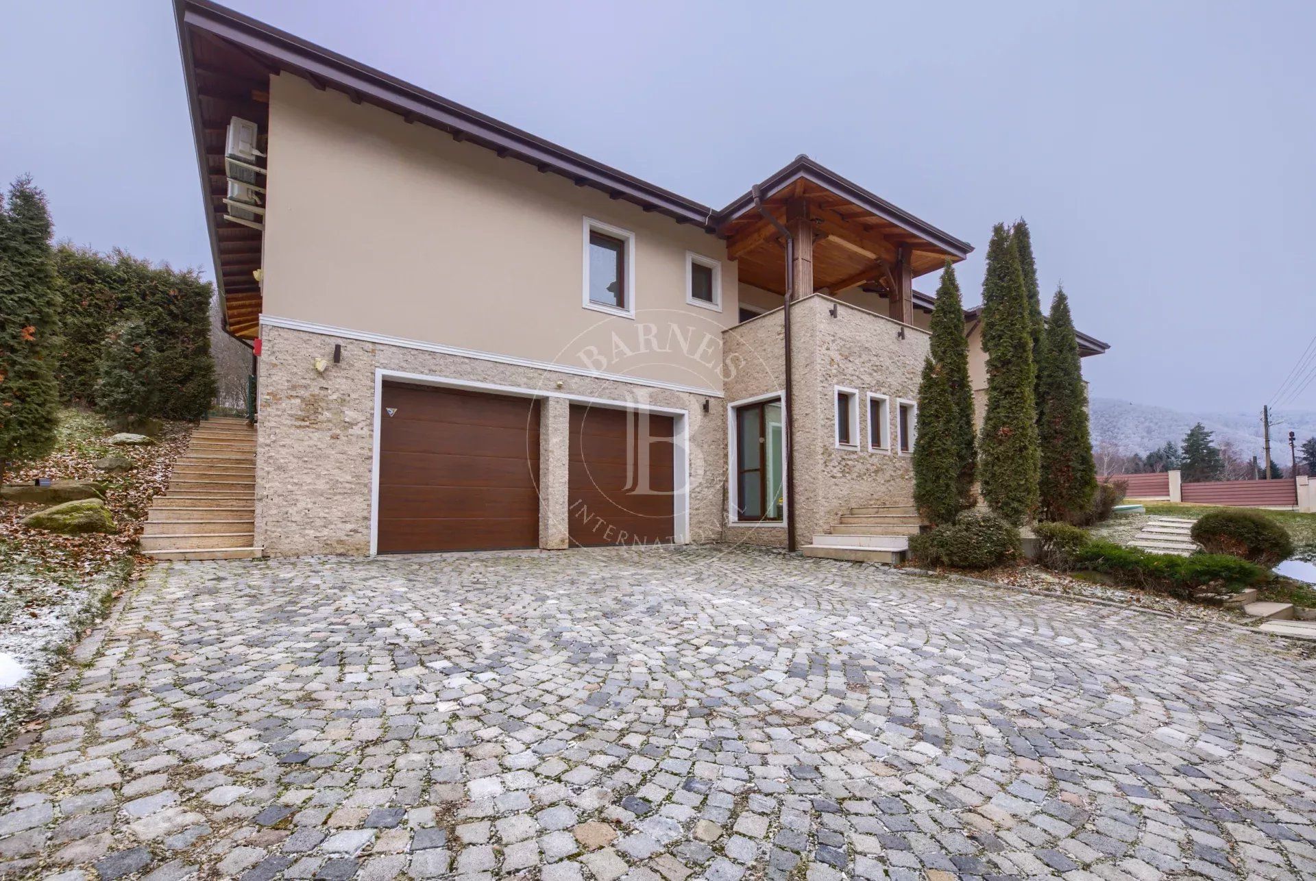 Имотът е с РЗП от 460 кв.м и е разположен в парцел с площ 4000 кв.м, с издадено разрешение за ползване от 2018 г. Високите тавани от 3 метра създават още от входа усещане за простор, светлина и елегантност, а големите витрини и френски прозорци осигуряват изобилие от естествена светлина през целия ден.