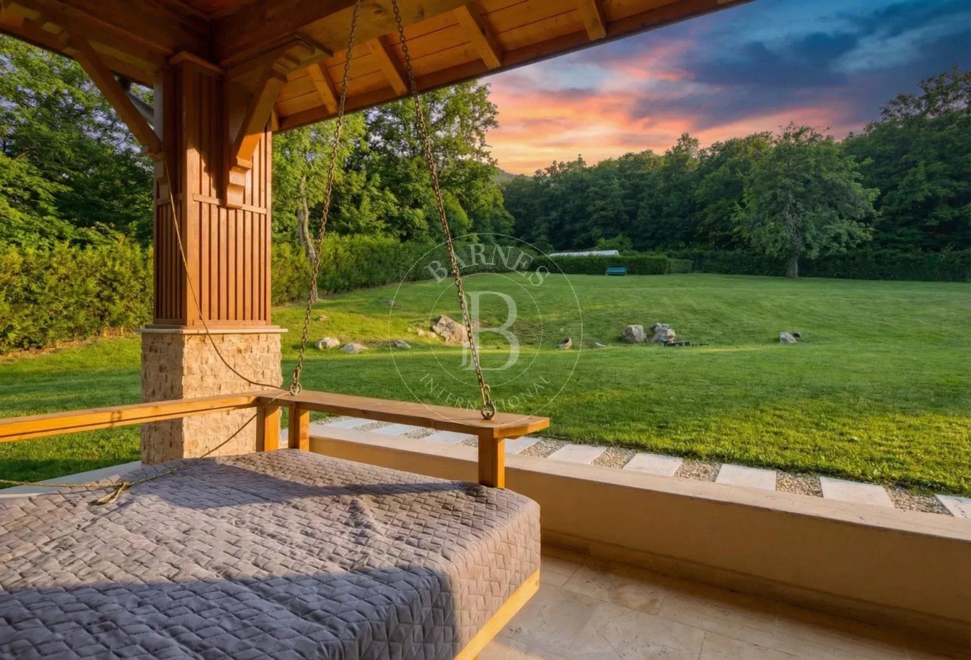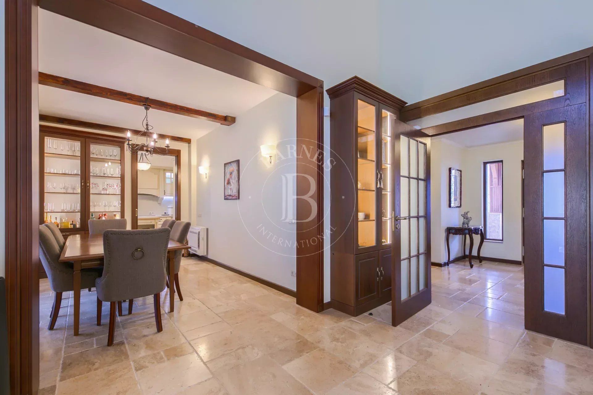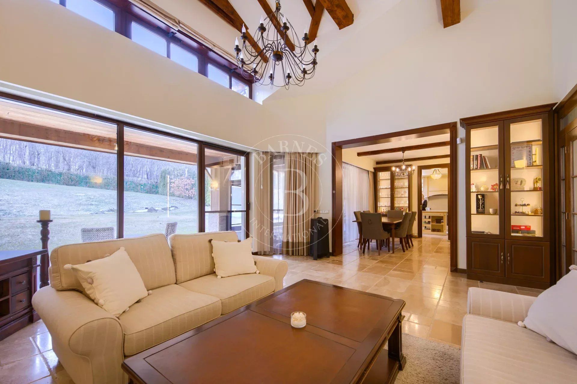 Имотът е с РЗП от 460 кв.м и е разположен в парцел с площ 4000 кв.м, с издадено разрешение за ползване от 2018 г. Високите тавани от 3 метра създават още от входа усещане за простор, светлина и елегантност, а големите витрини и френски прозорци осигуряват изобилие от естествена светлина през целия ден.