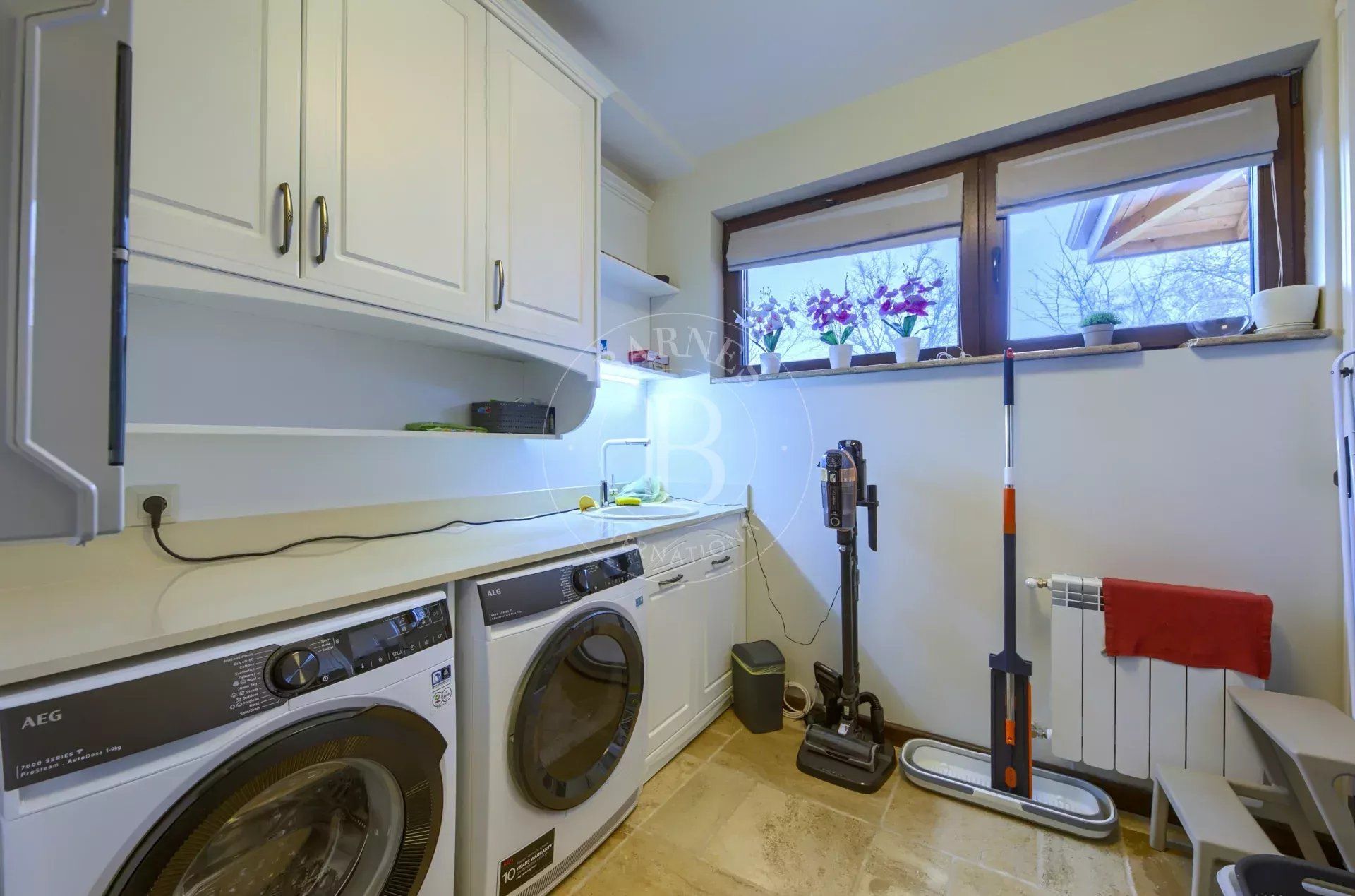Настилките са изпълнени от естествени материали – паркет и гранитогресни плочи. На разположение са три складови помещения, сервизно и перално помещение, оборудвани с висок клас уреди, включително пералня AEG и сушилня AEG.