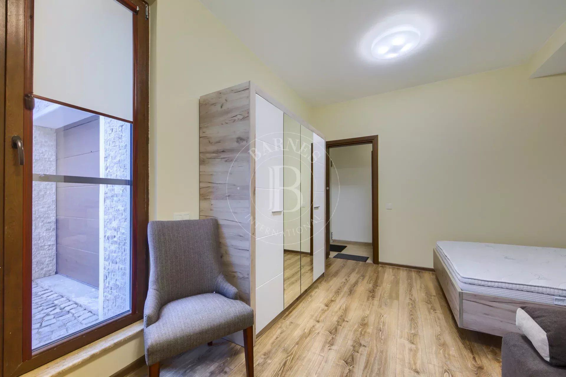 • Имотът разполага с три луксозни спални с площ от по 18 кв.м, всяка със собствена баня и тоалетна, осигуряващи максимално уединение. Налична е и отделна гардеробна, гарантираща безупречна организация на пространството.