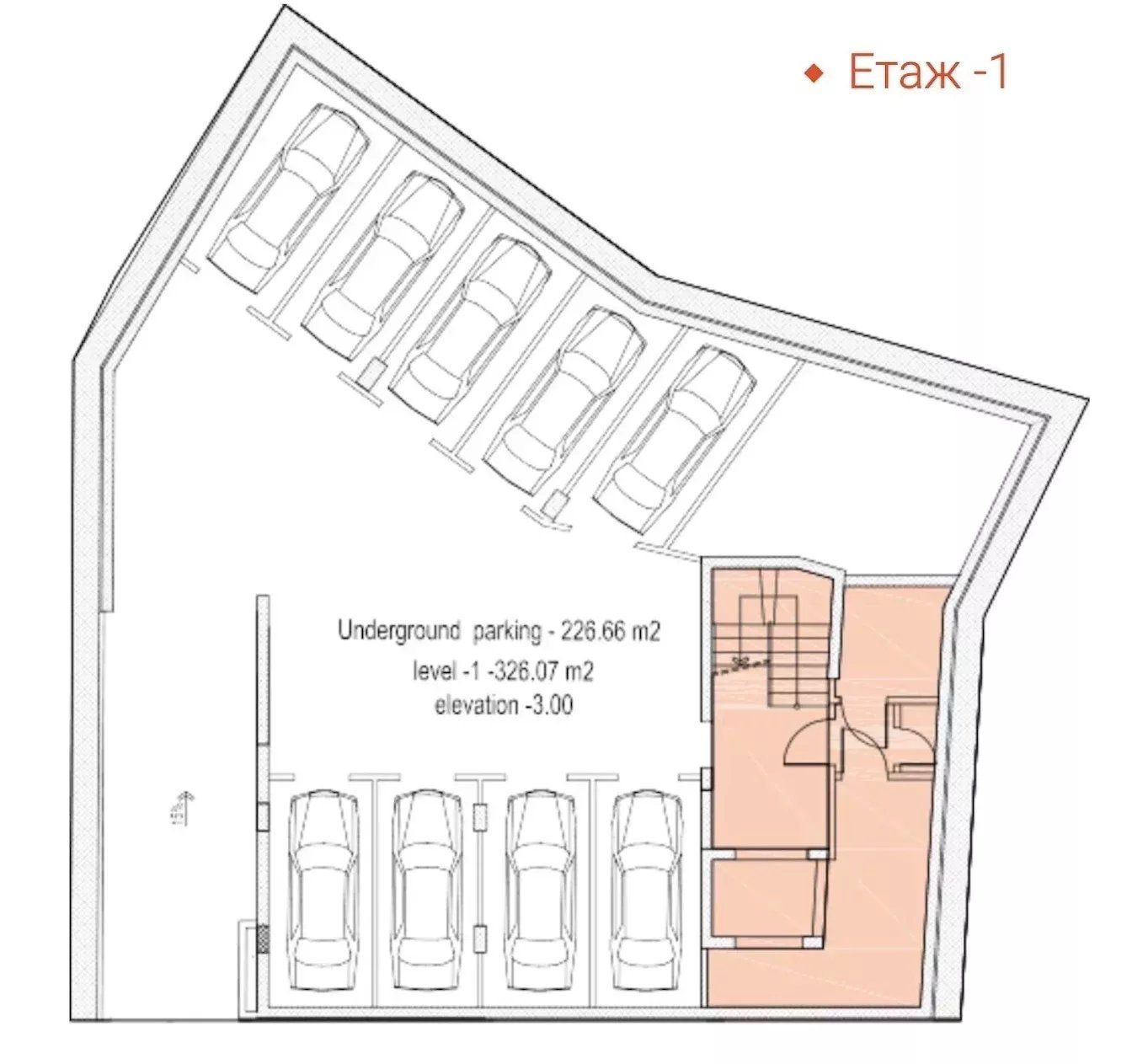 • Сутерен: подземен паркинг с 10 паркоместа, помещение за ГРТ и помещение за дизел-генератор