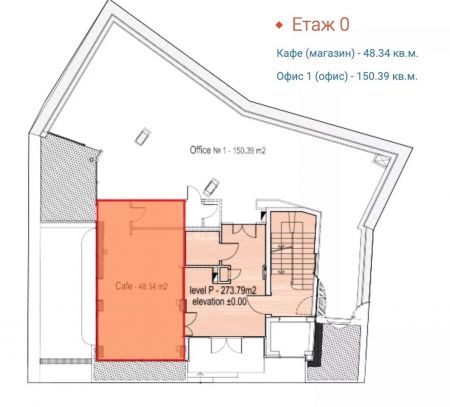 • Партер: представително входно фоайе с рецепция, кафе зона, санитарен възел за хора с увреждания и Офис №1