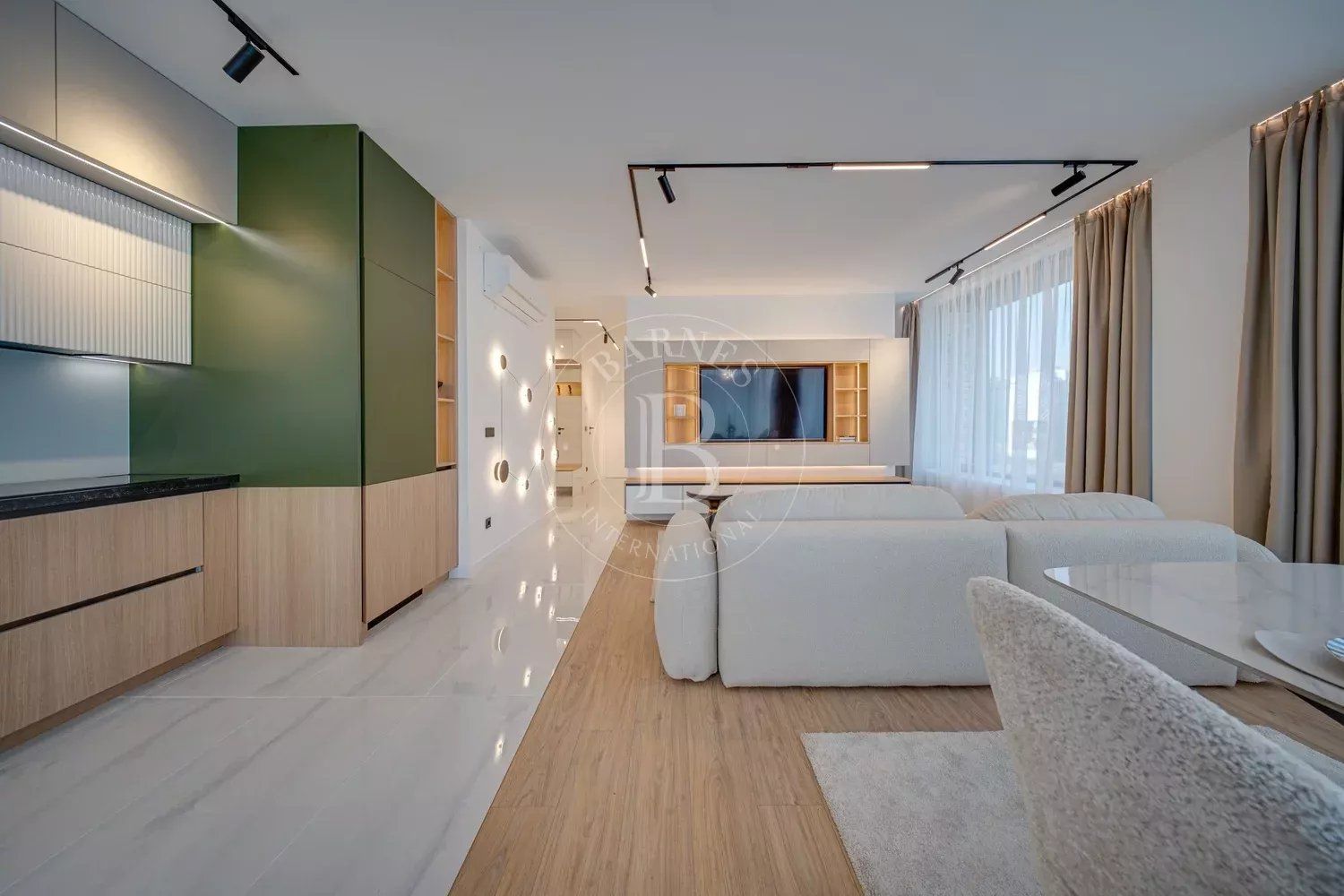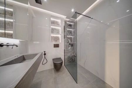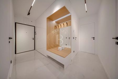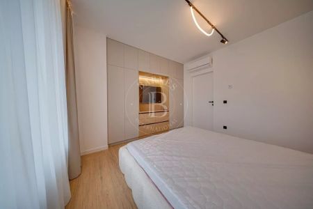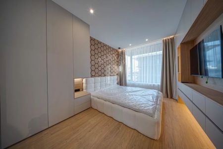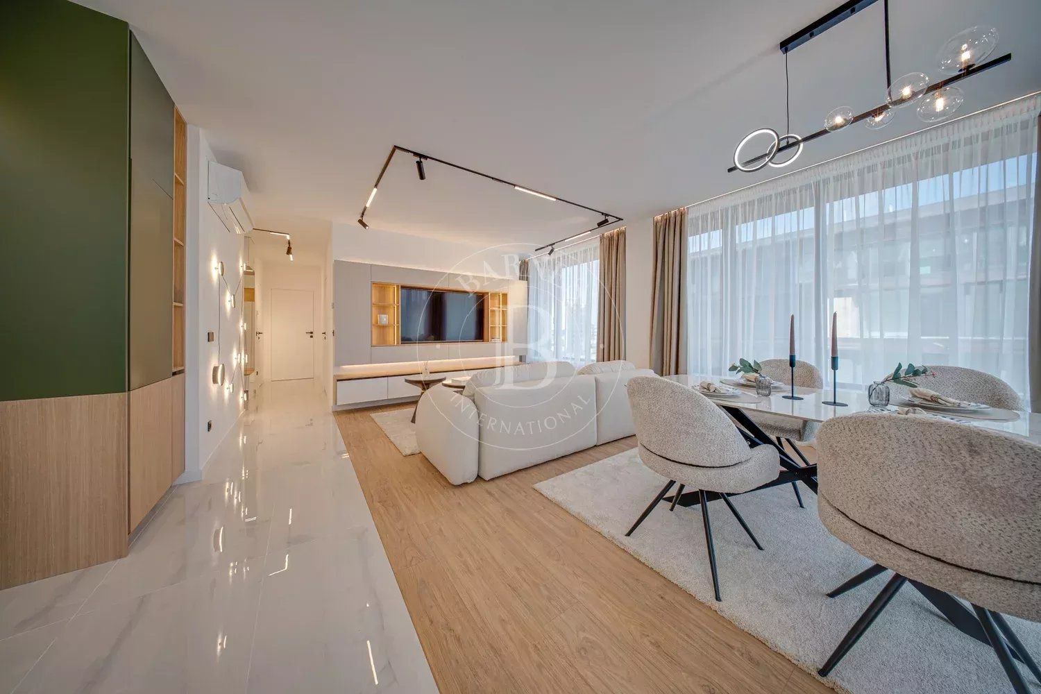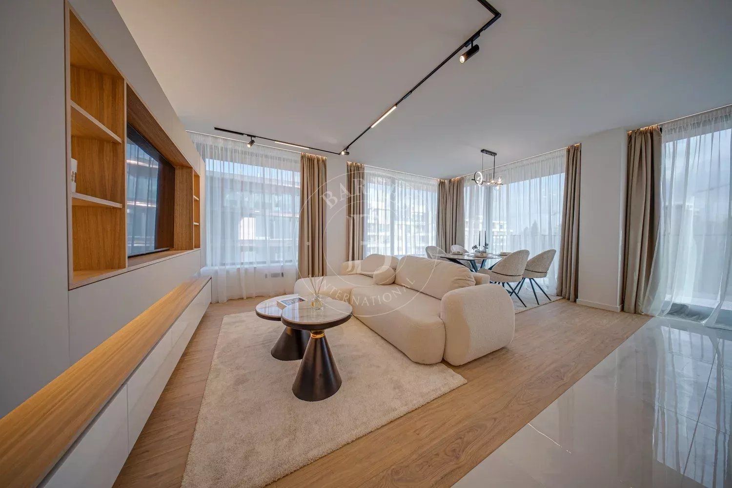 Апартаментът от 130 кв.м е разположен на 3-ти етаж. Имотът е светъл, предлага модерна визия и интериор с изчистени линии. Големите прозорци създават усещане за простор и допринасят за изобилие на светлина, а качествените материали и изискани мебели допринасят за уют и елегантност. Отоплението е подово чрез газово котле, като допълнително са инсталирани климатици за комфорт през летните месеци.