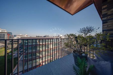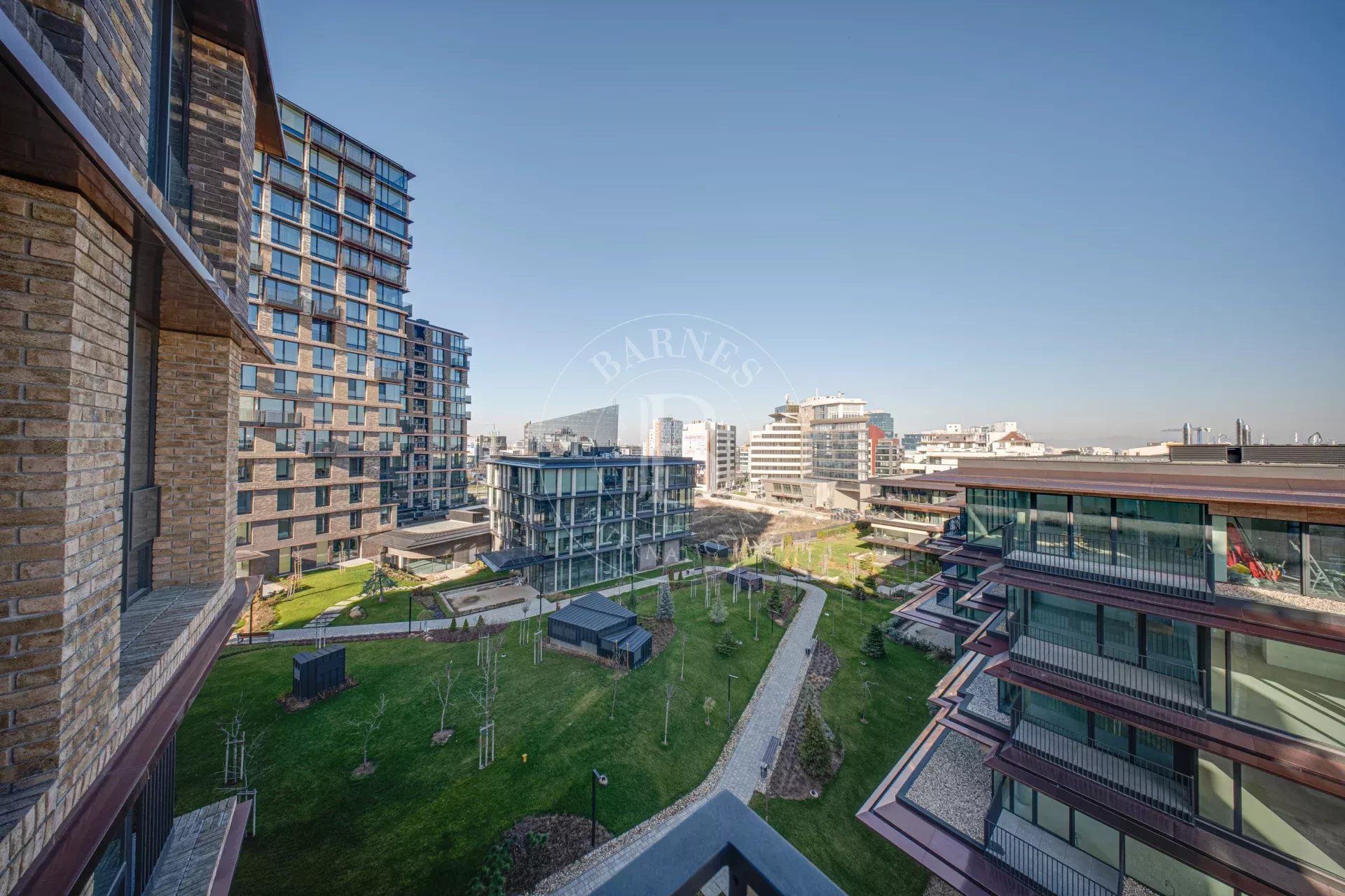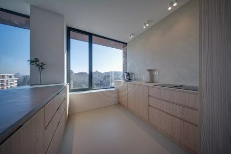 Едно от основните предимства на апартамента са големите френски прозорци, които изпълват помещенията с естествена светлина и създават усещане за простор и въздух. Те осигуряват плавна връзка между интериора и външното пространство, като разкриват красиви гледки към града и Витоша и допринасят за усещането за живот с повече свобода и комфорт.