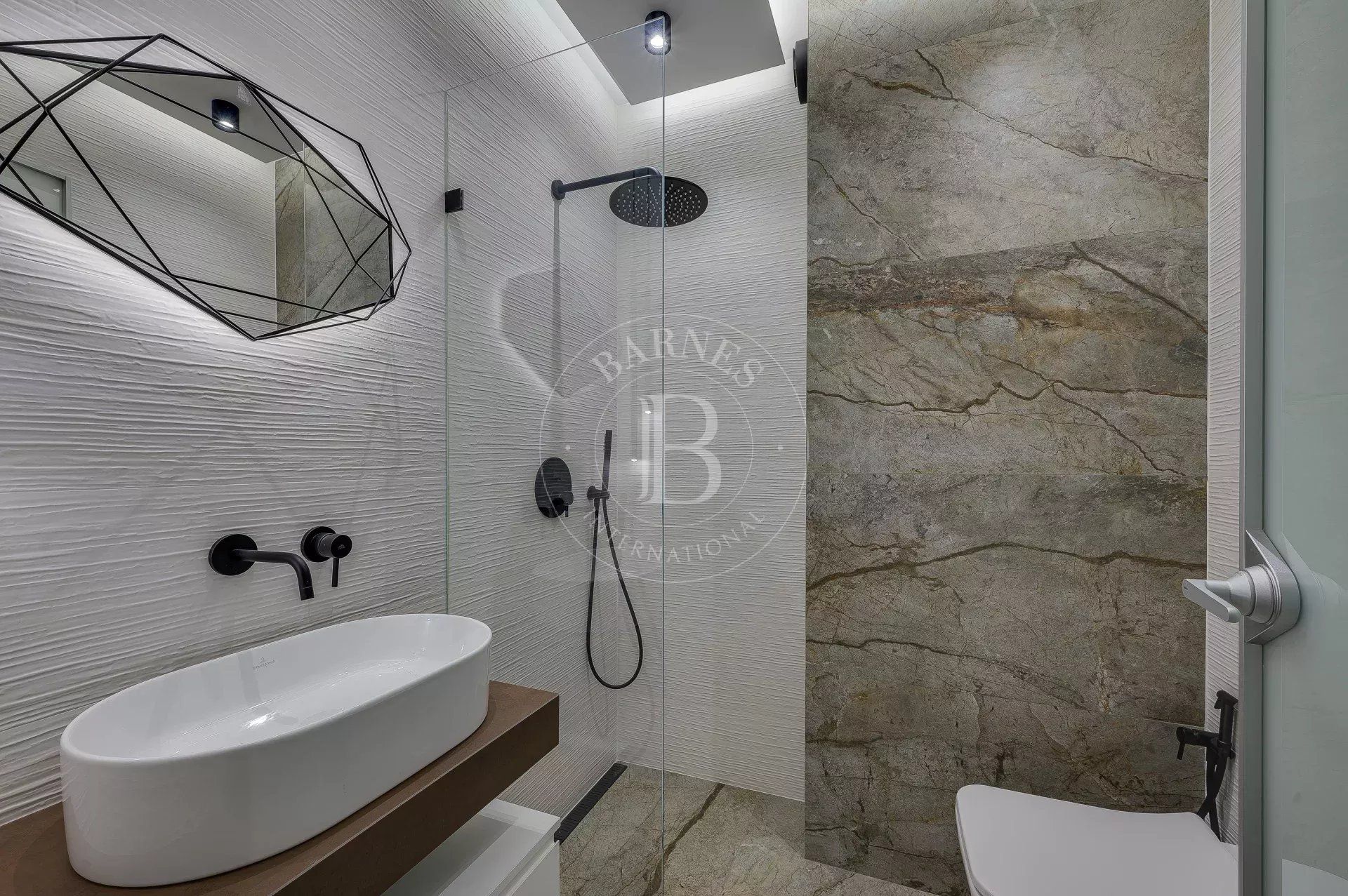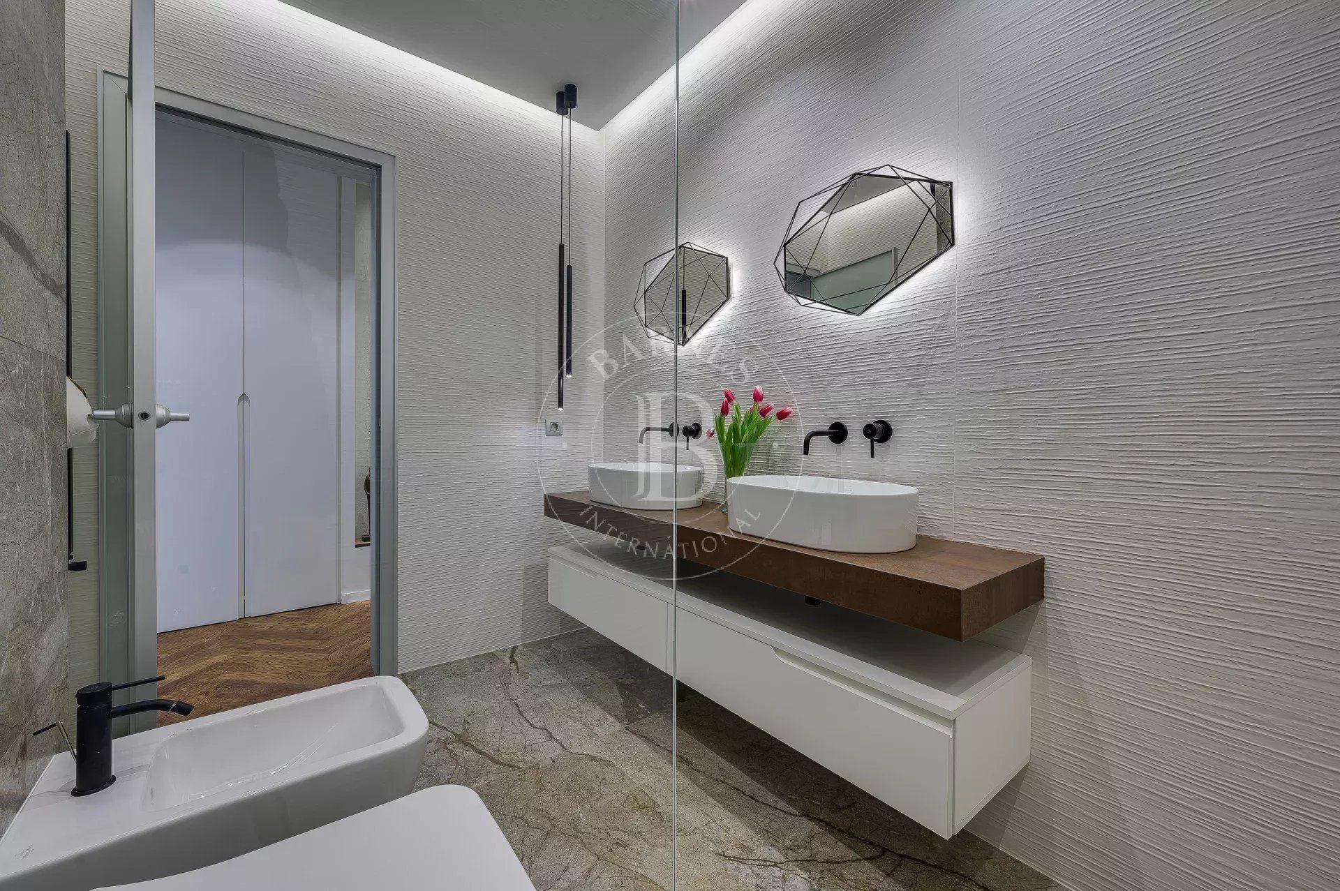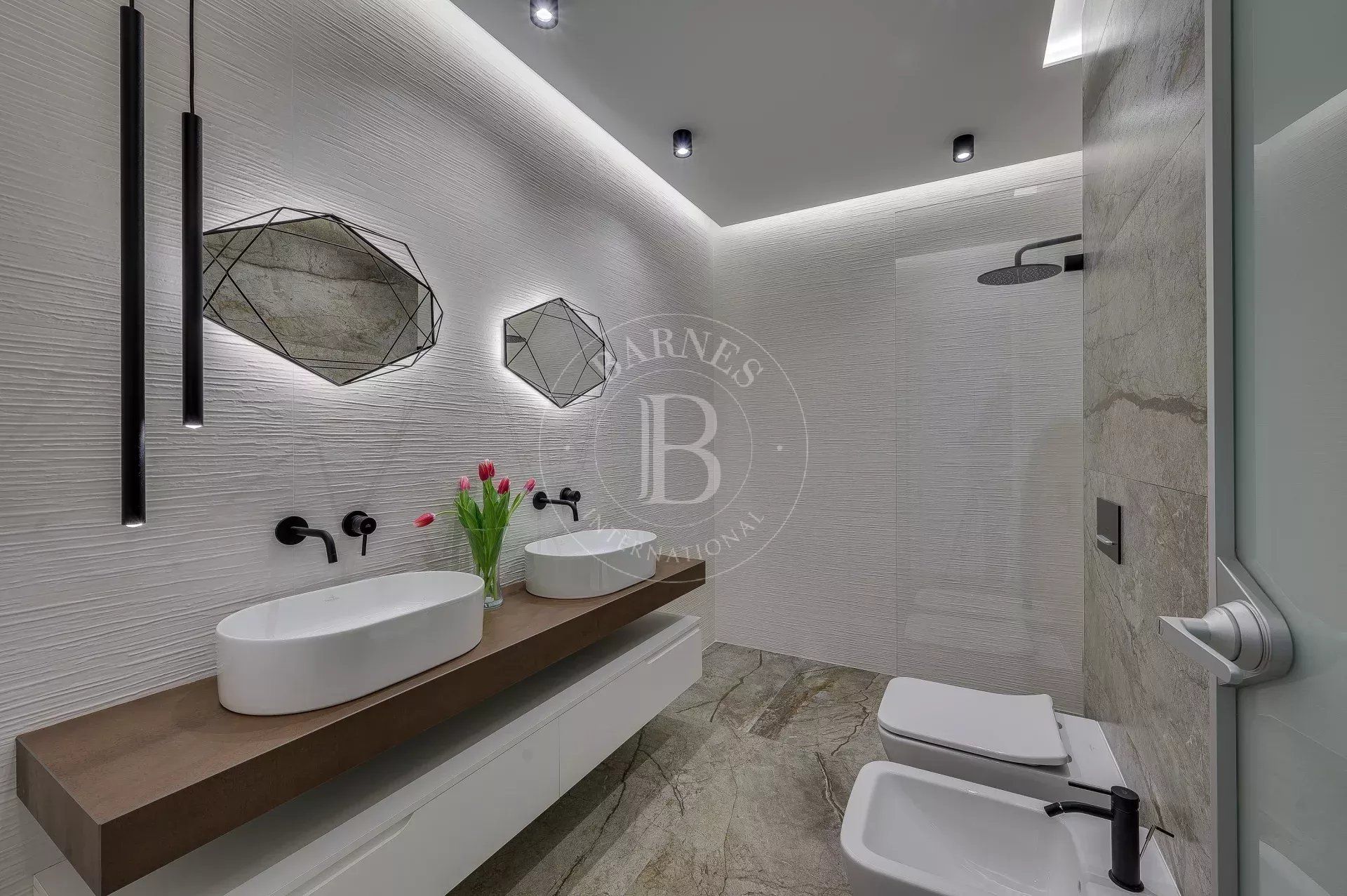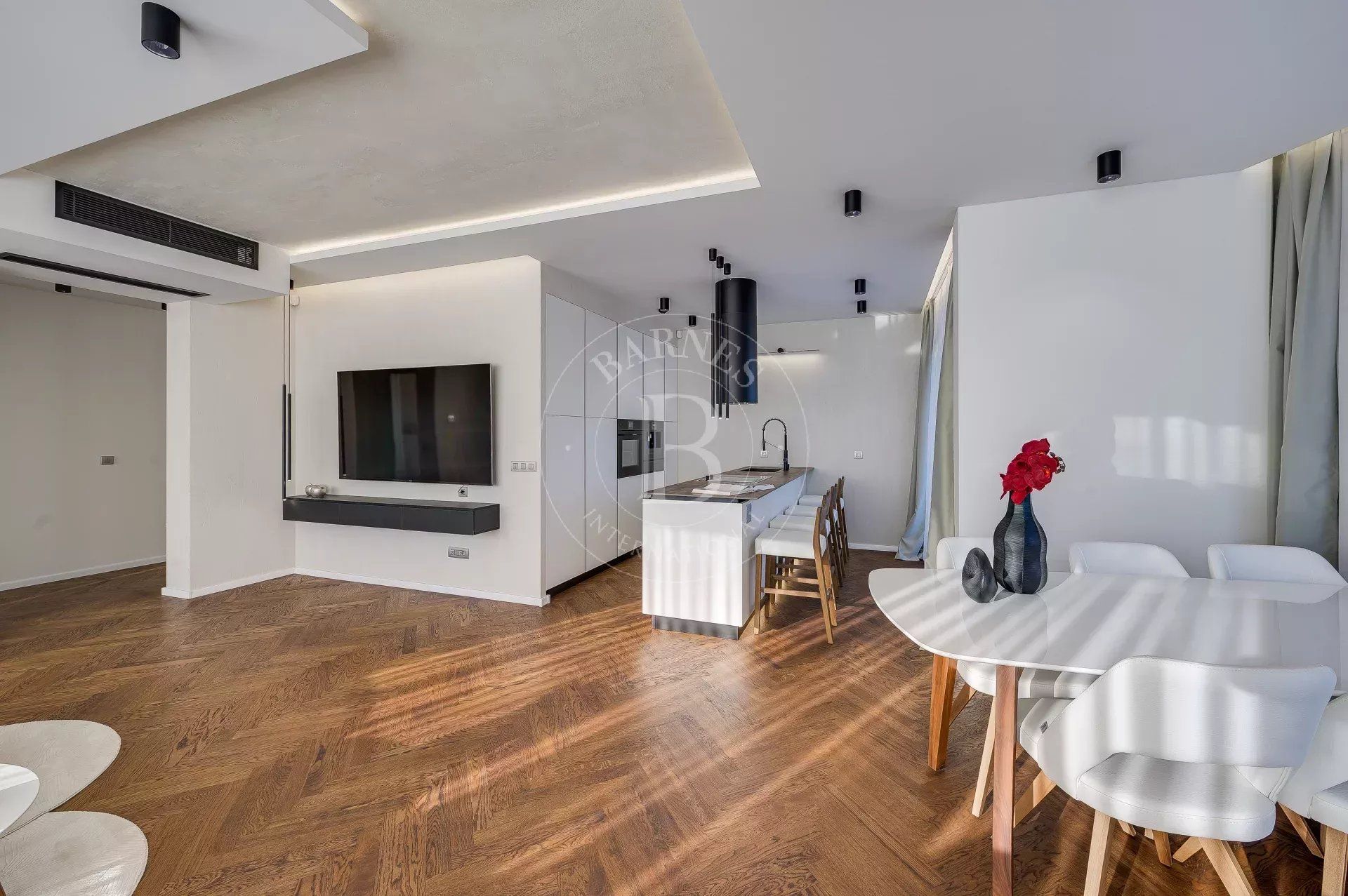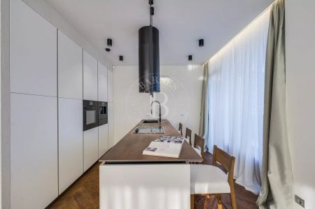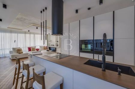 Интериорните врати Rimadesio, италианската кухня Astra с плот Laminam и високият клас електроуреди Kuppersbusch и Faber подчертават безкомпромисното качество на изпълнение и модерната естетика на жилището.