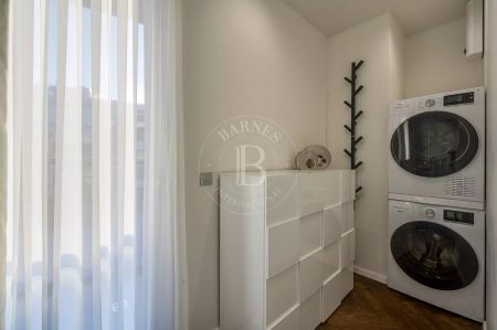 • Практично перално помещение с място за пералня, сушилня и допълнителни шкафове за съхранение;