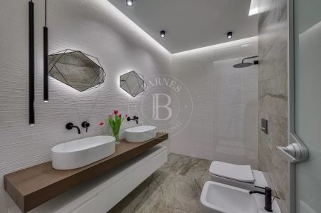 • Две луксозно оборудвани бани с тоалетни, изпълнени с висококачествена санитария и подово отопление;