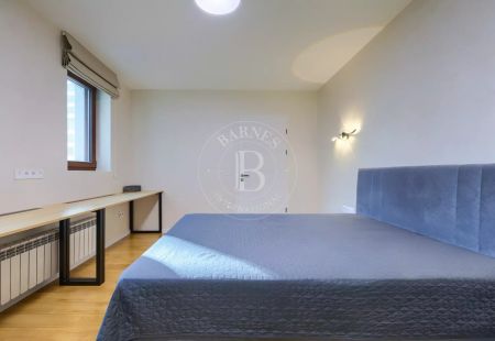 Спалнята е просторна, с голям гардероб и две работни места, които я правят идеално решение за работа от вкъщи или учене. Банята разполага с прозорец, осигуряващ естествена светлина и вентилация.