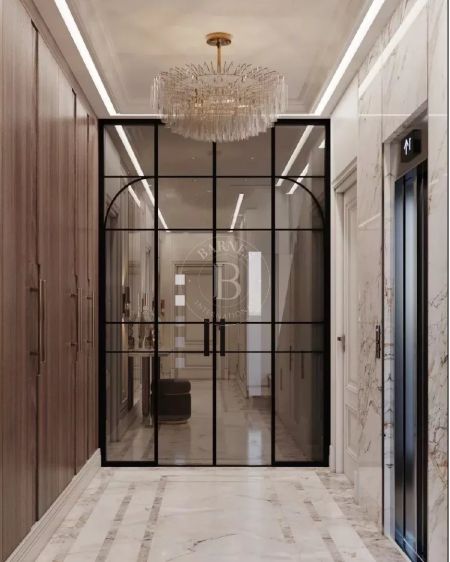 Къщата е развита на три етажа и едно подземно ниво, обслужвани от асансьор, осигуряващ удобство и функционалност между всички нива.