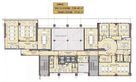 С над 500 кв.м качествено офисно пространство, имотът може да бъде структурен като: