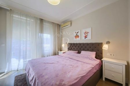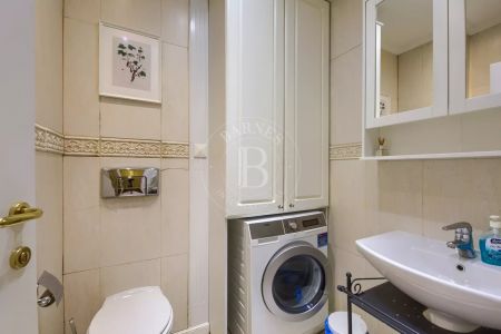 Спалнята е самостоятелна и разполага със собствена баня (en-suite), вградени гардероби и излаз към терасата. В апартамента има и отделна тоалетна / мокро помещение, оборудвана с пералня със сушилня и допълнително място за съхранение.