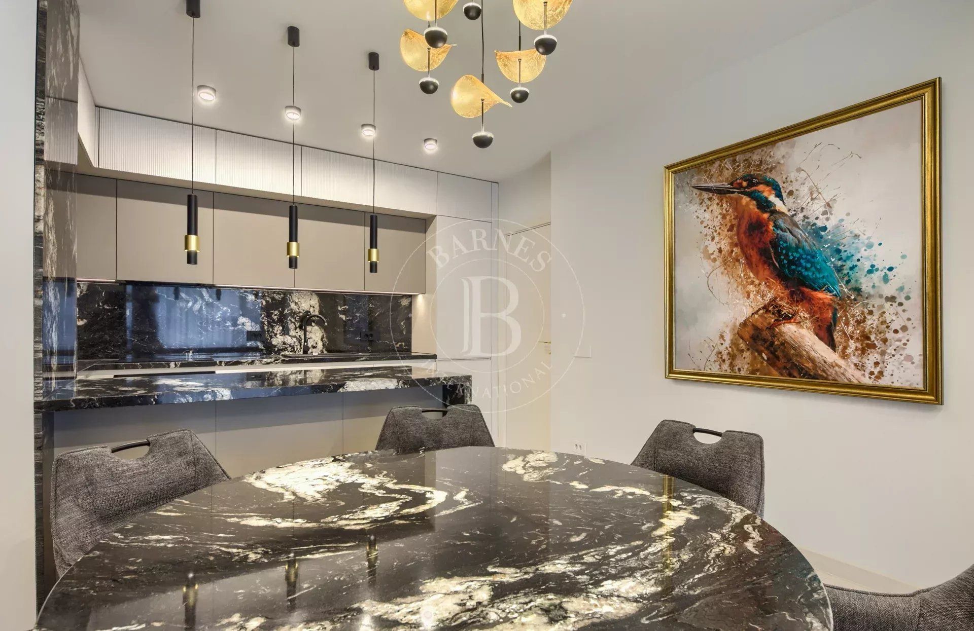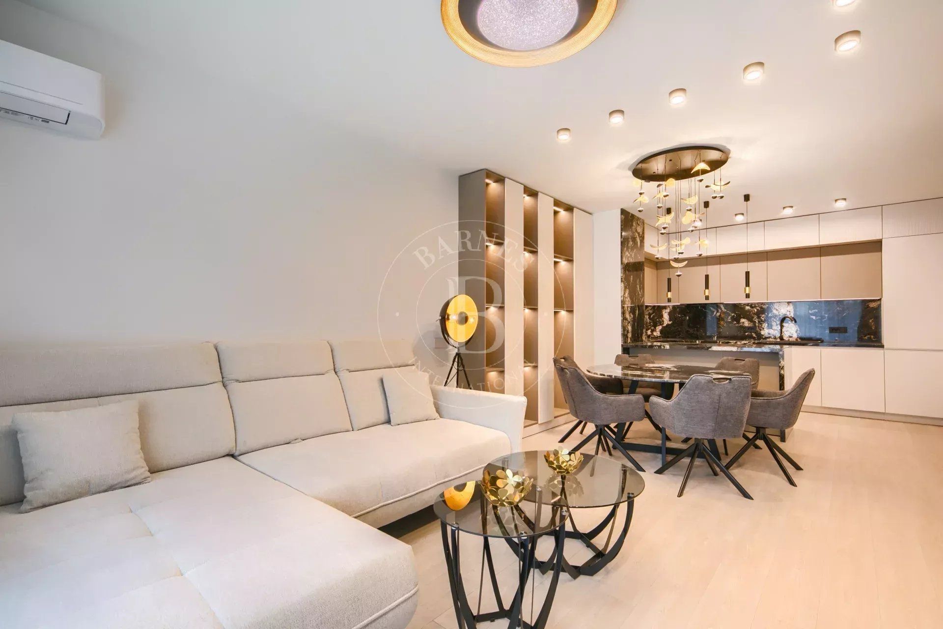 Големите френски прозорци осигуряват изобилие от естествена светлина и създават усещане за простор и хармония. Кухнята е напълно оборудвана с висок клас електроуреди и функционални решения за максимално удобство в ежедневието.