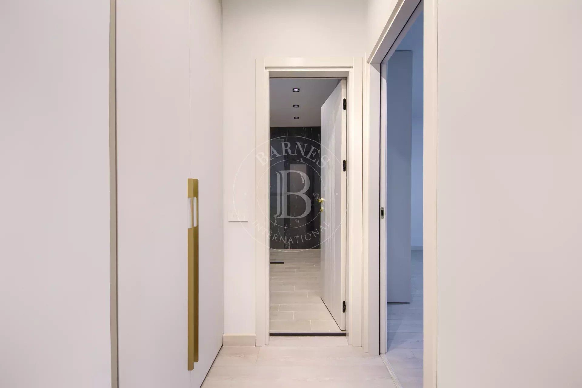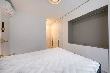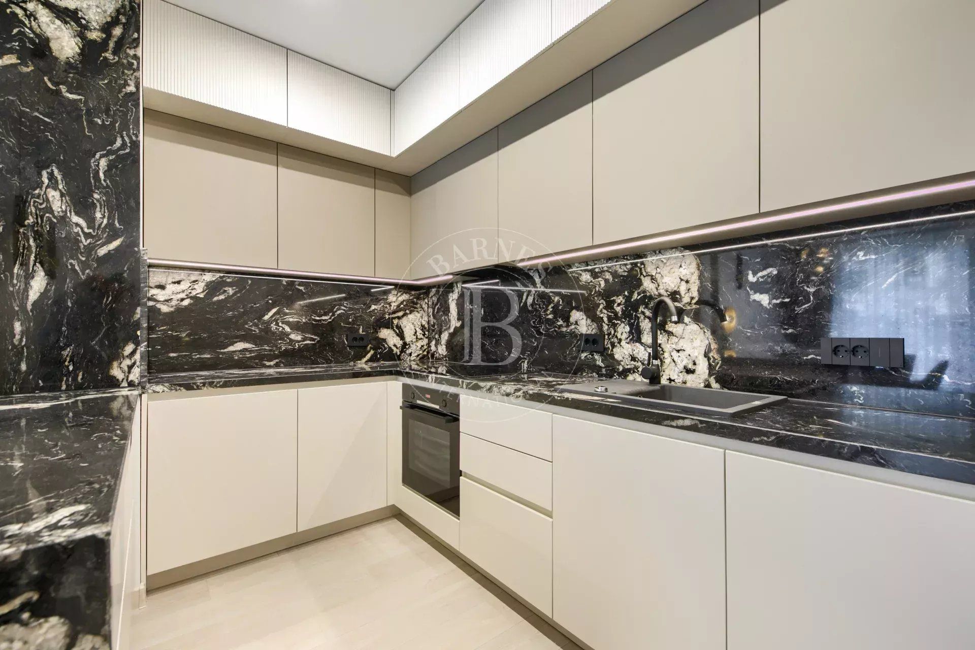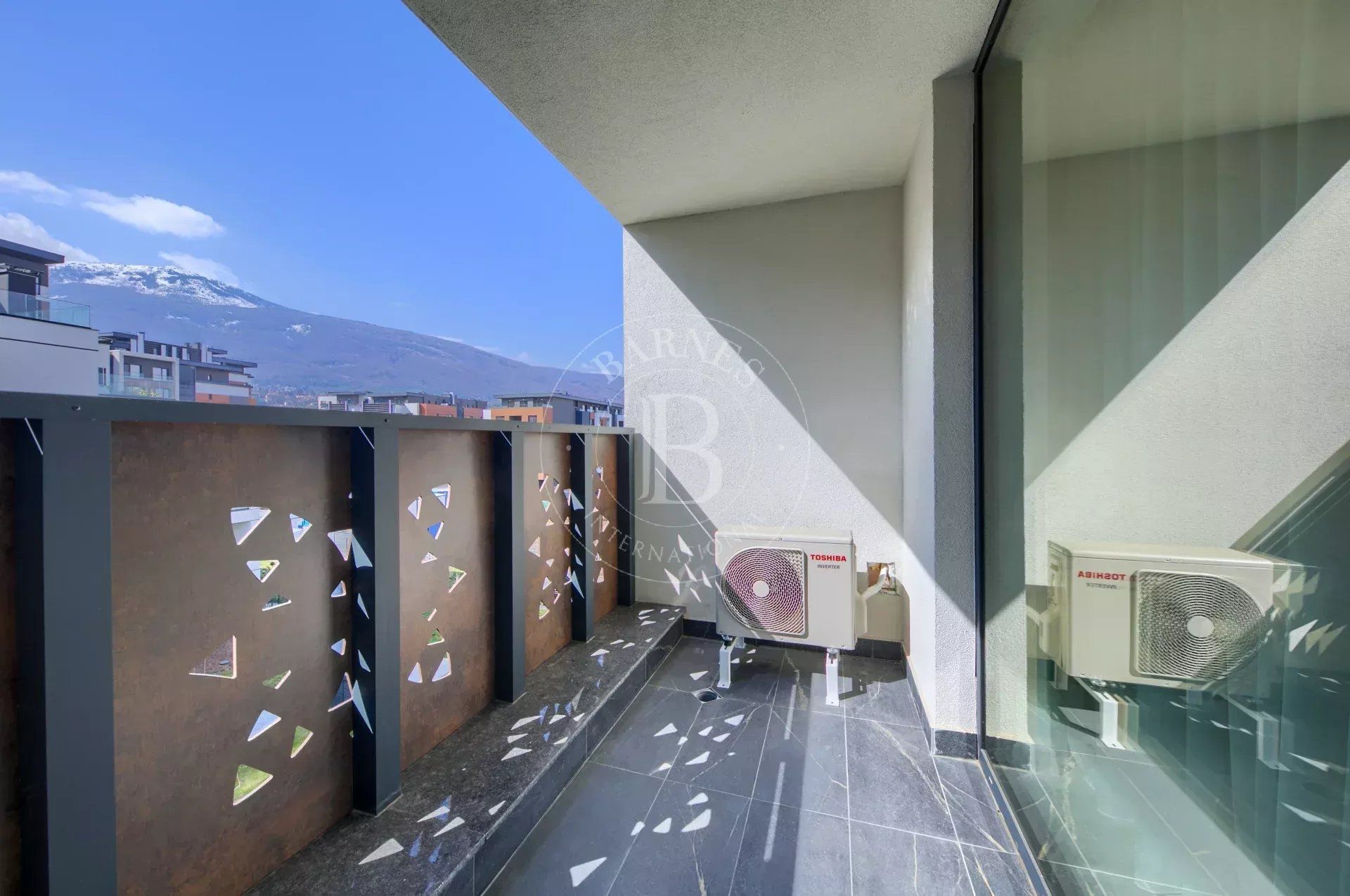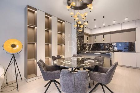 Жилището е част от модерен жилищен комплекс с впечатляваща архитектура, изпълнен с окачена фасада от широкоформатни плочи Laminam и висококачествени материали.