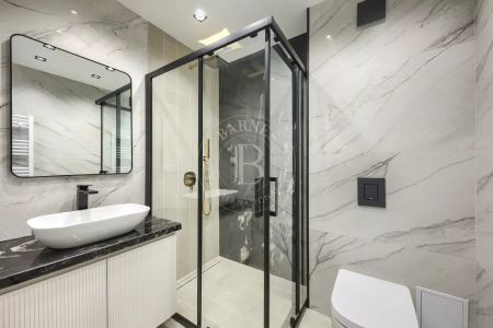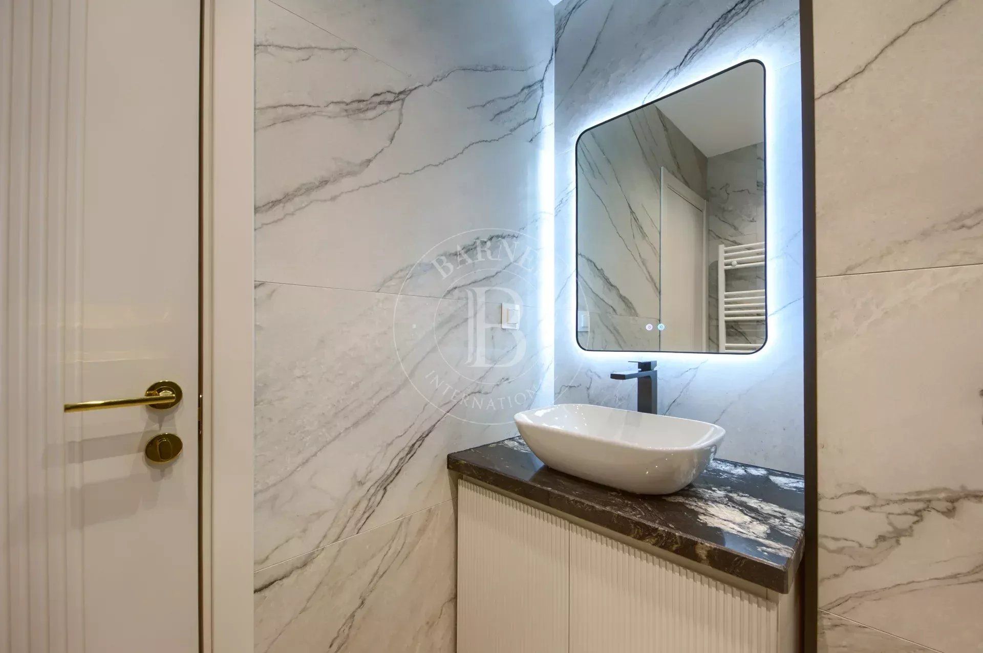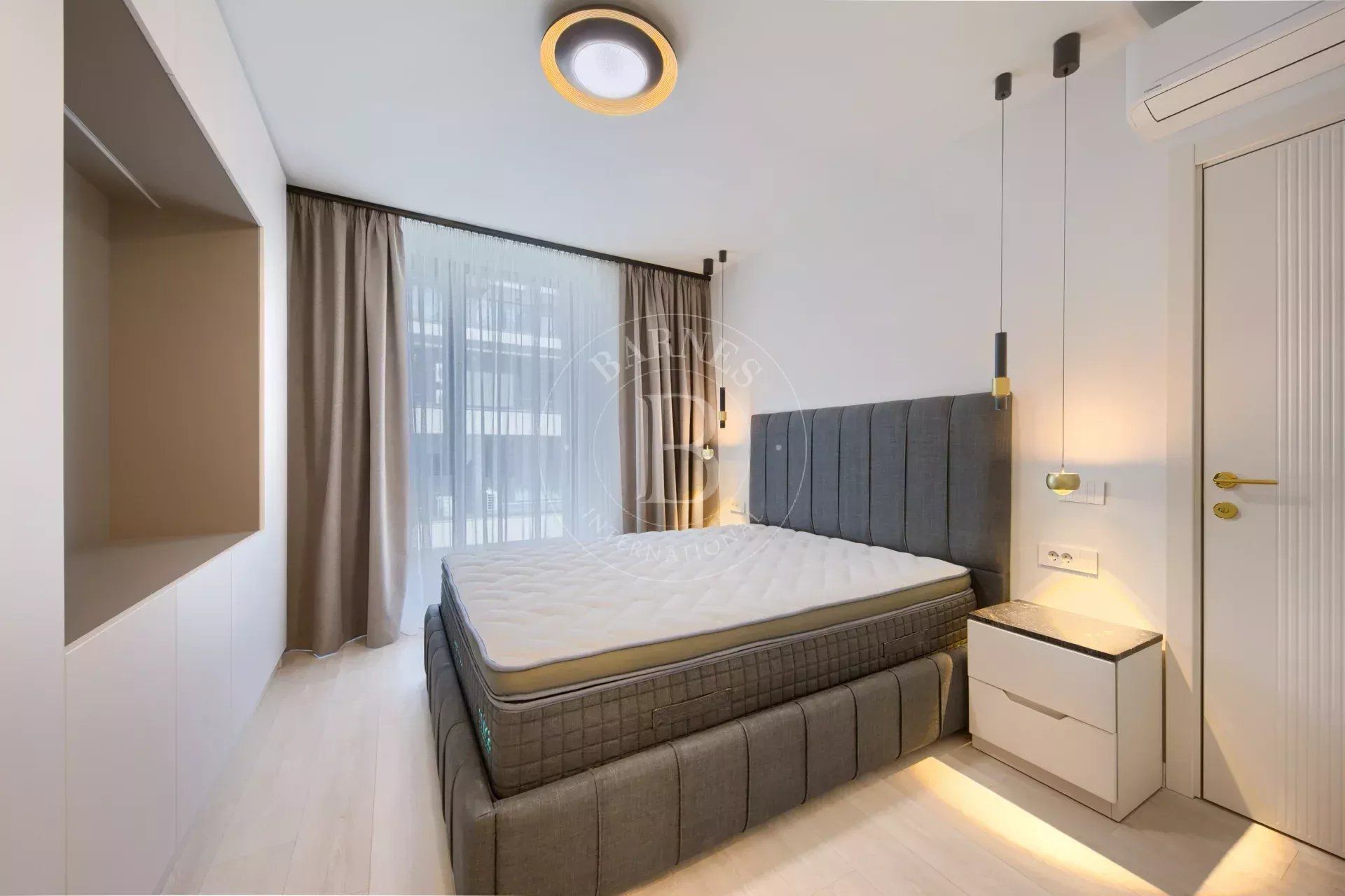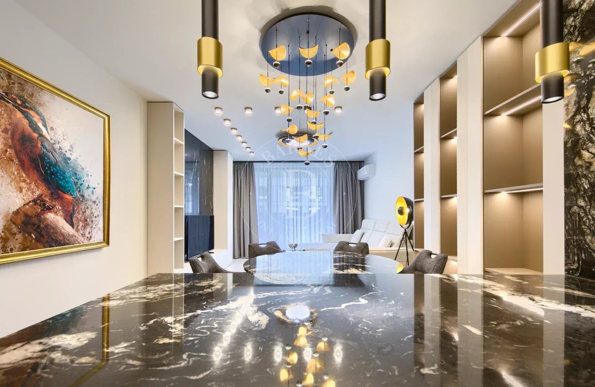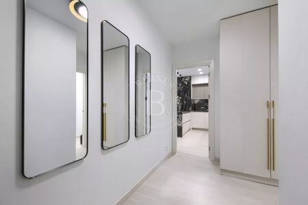 Жилището е част от модерен жилищен комплекс с впечатляваща архитектура, изпълнен с окачена фасада от широкоформатни плочи Laminam и висококачествени материали.