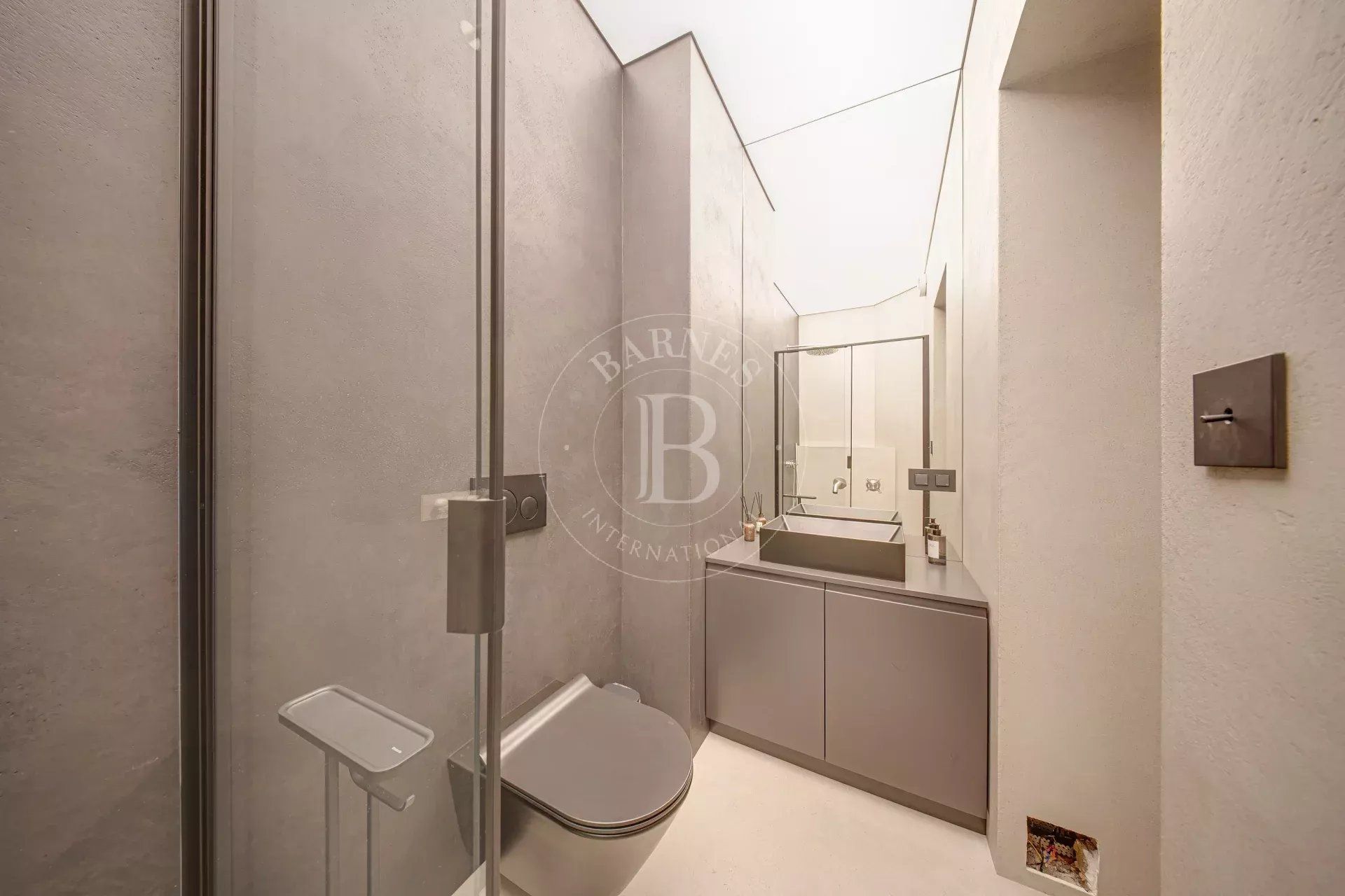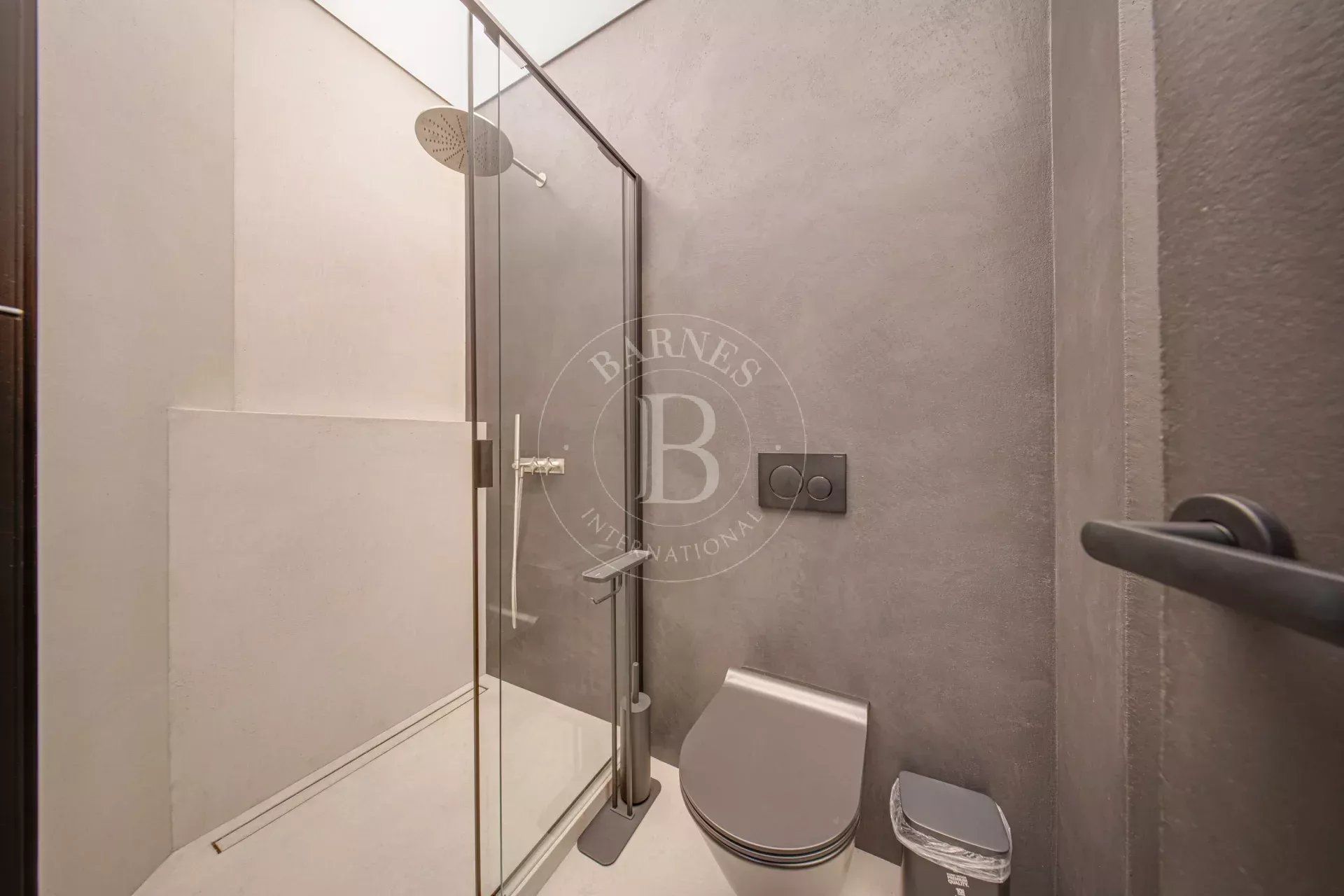 Интериорът е решен в съвременна минималистична линия, с подбрани материали, чиста естетика и ясно усещане за завършеност. Обработените стени и настилки, дизайнерското осветление, опънатите тавани, LED подсветката и сензорните решения изграждат пространство с характер и финес.