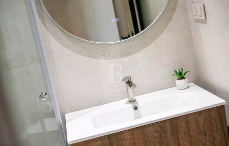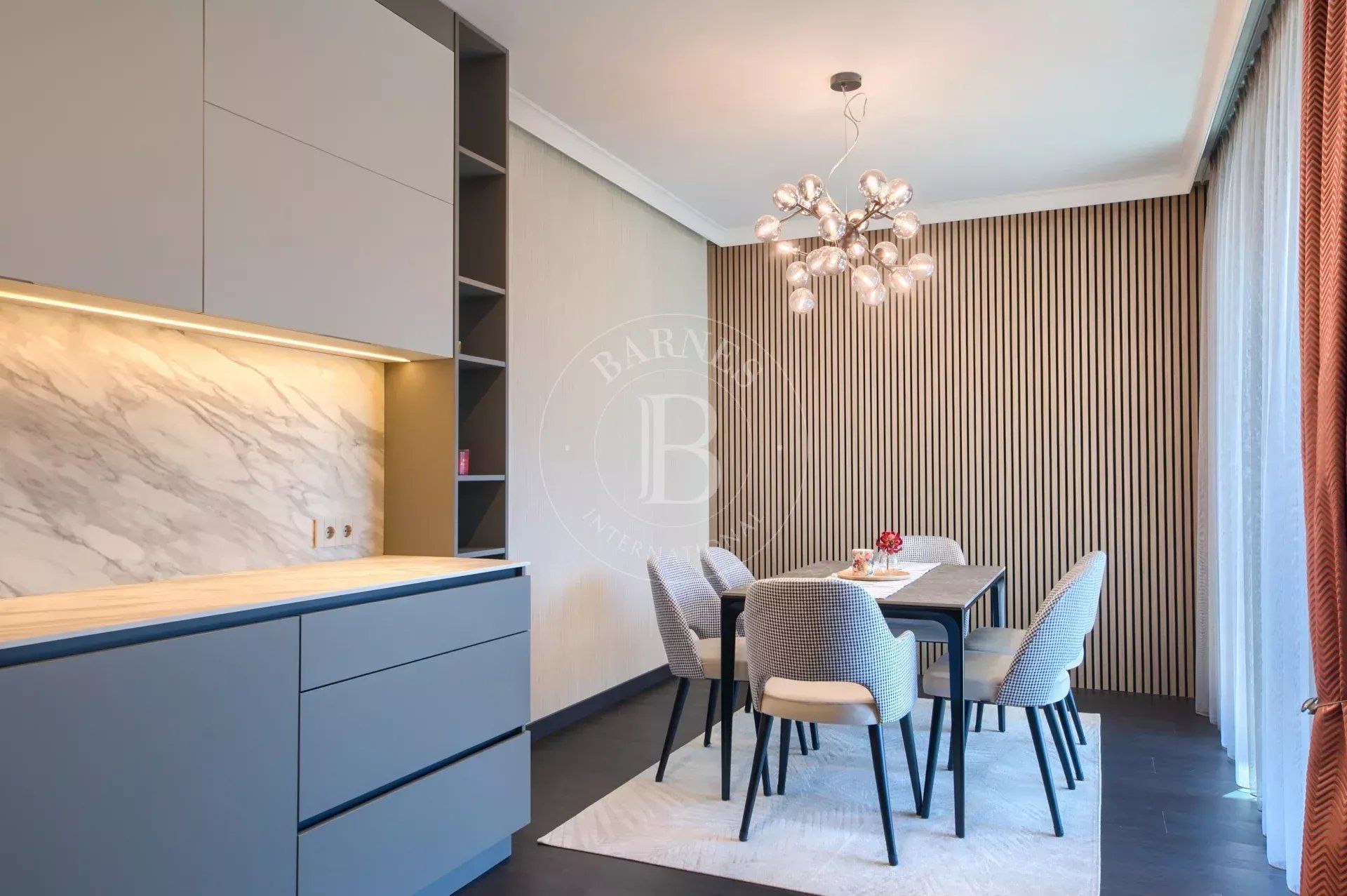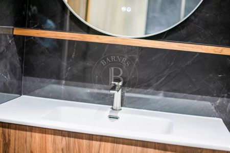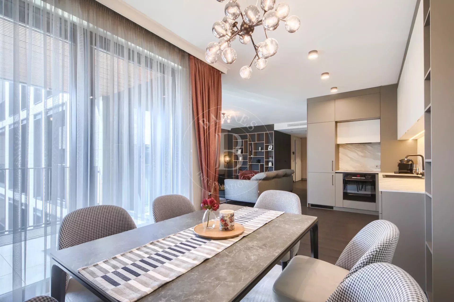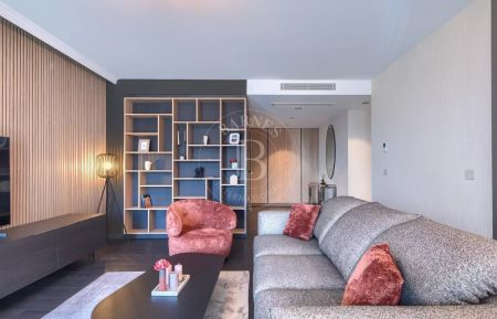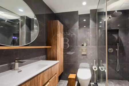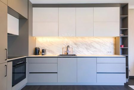 Имотът е изпълнен по дизайнерски проект в елегантен модерен стил, с много усет към детайлите и функционалност. Обзавеждането на апартамента включва мебели и оборудване от най-висок клас.