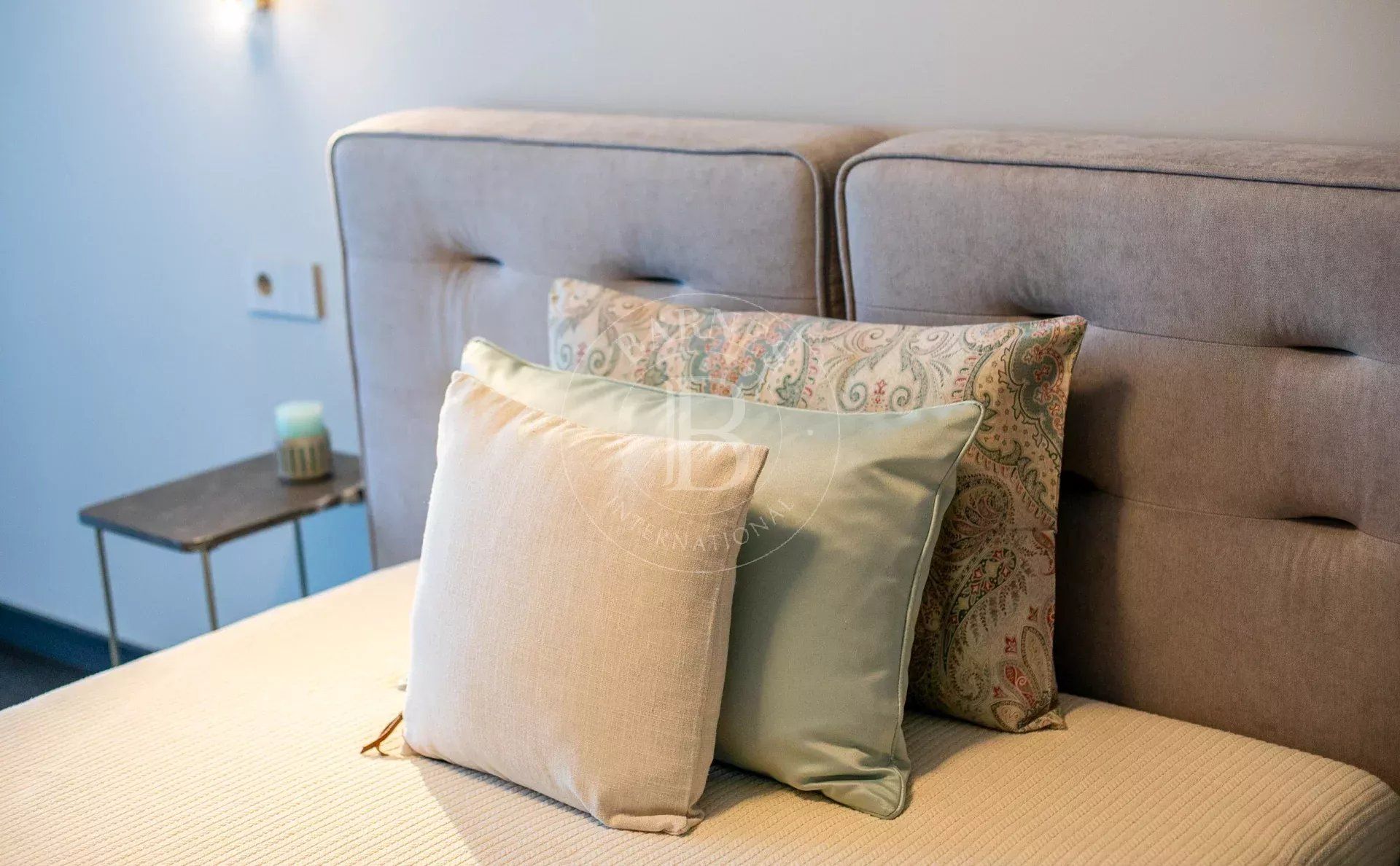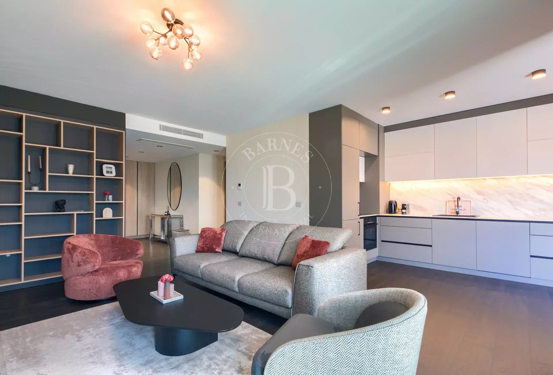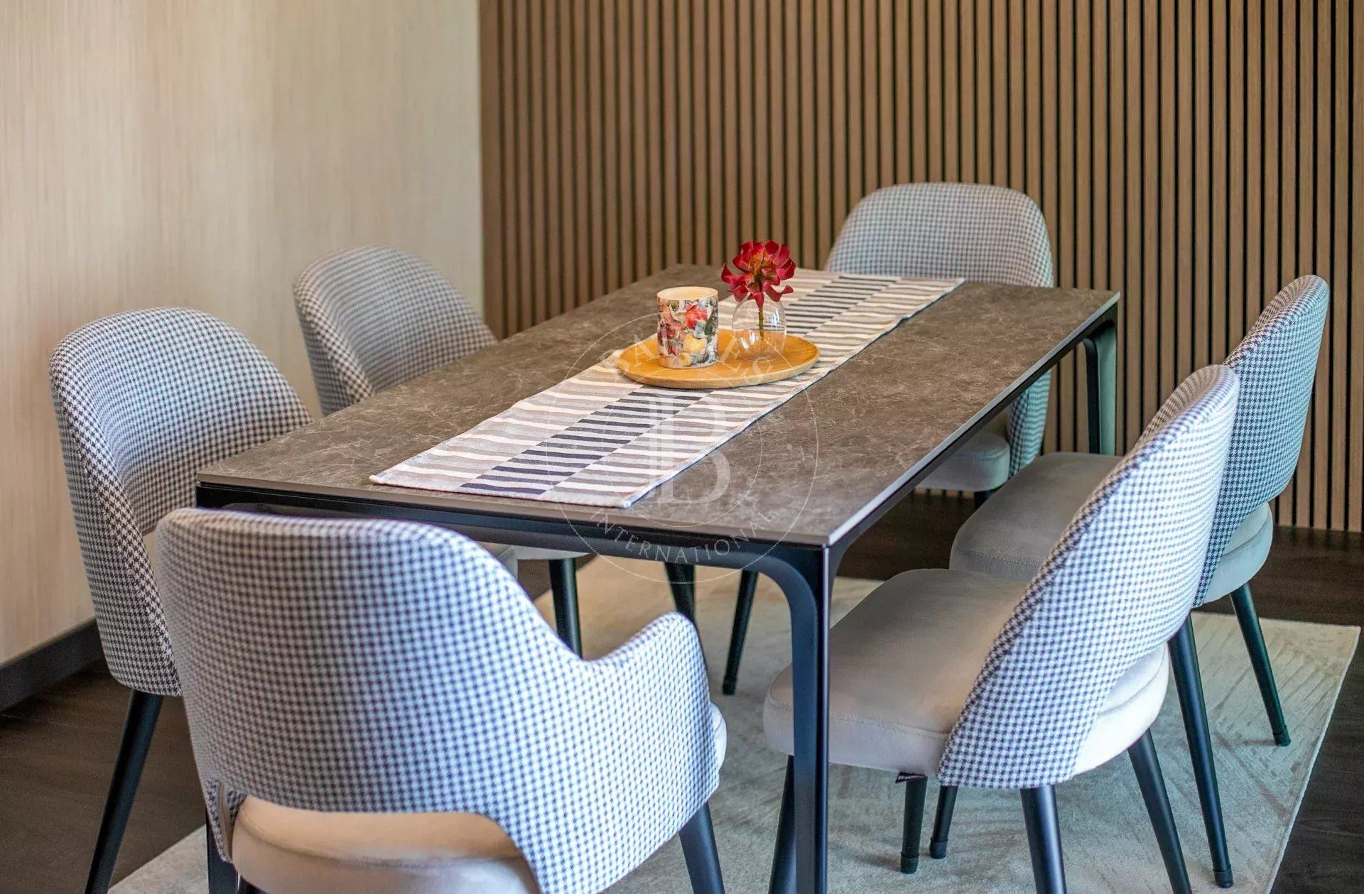 Имотът е изпълнен по дизайнерски проект в елегантен модерен стил, с много усет към детайлите и функционалност. Обзавеждането на апартамента включва мебели и оборудване от най-висок клас.