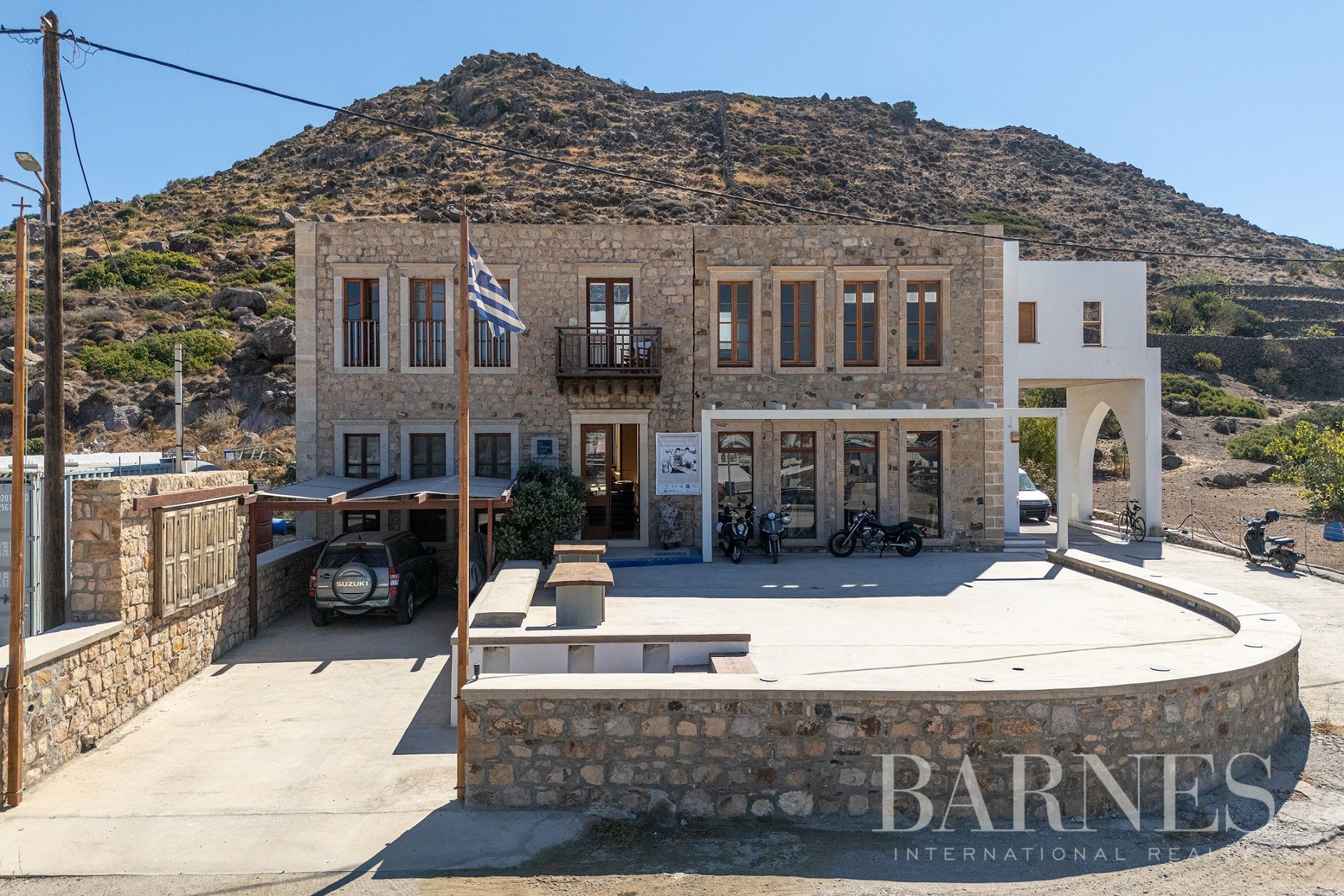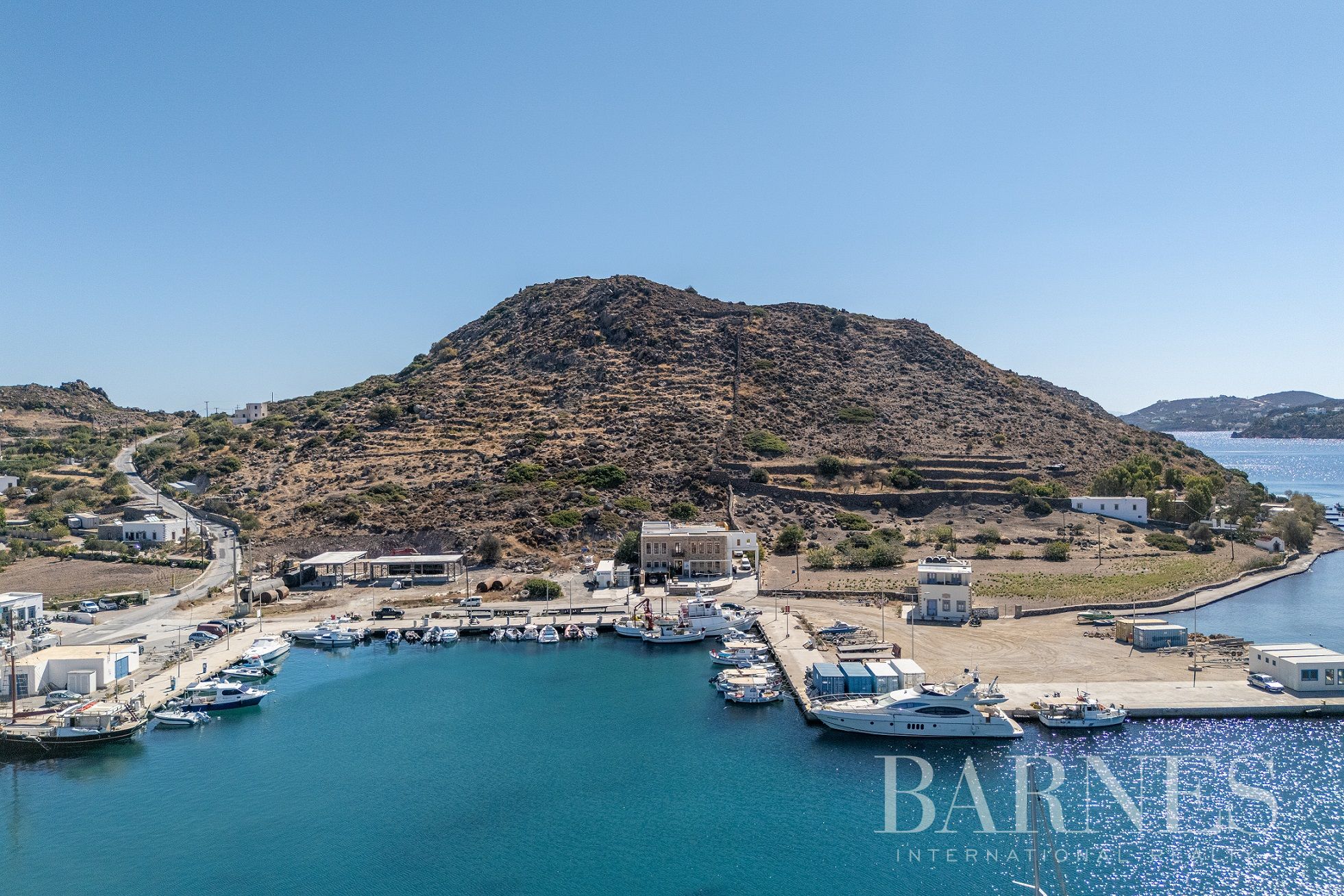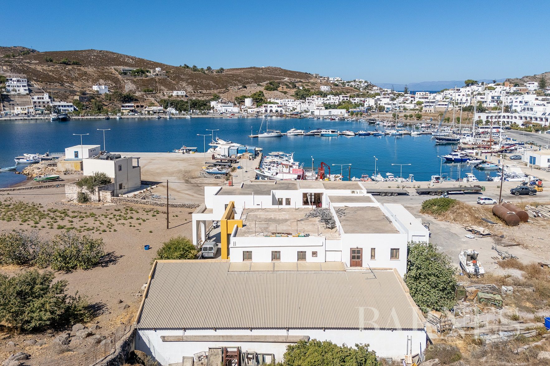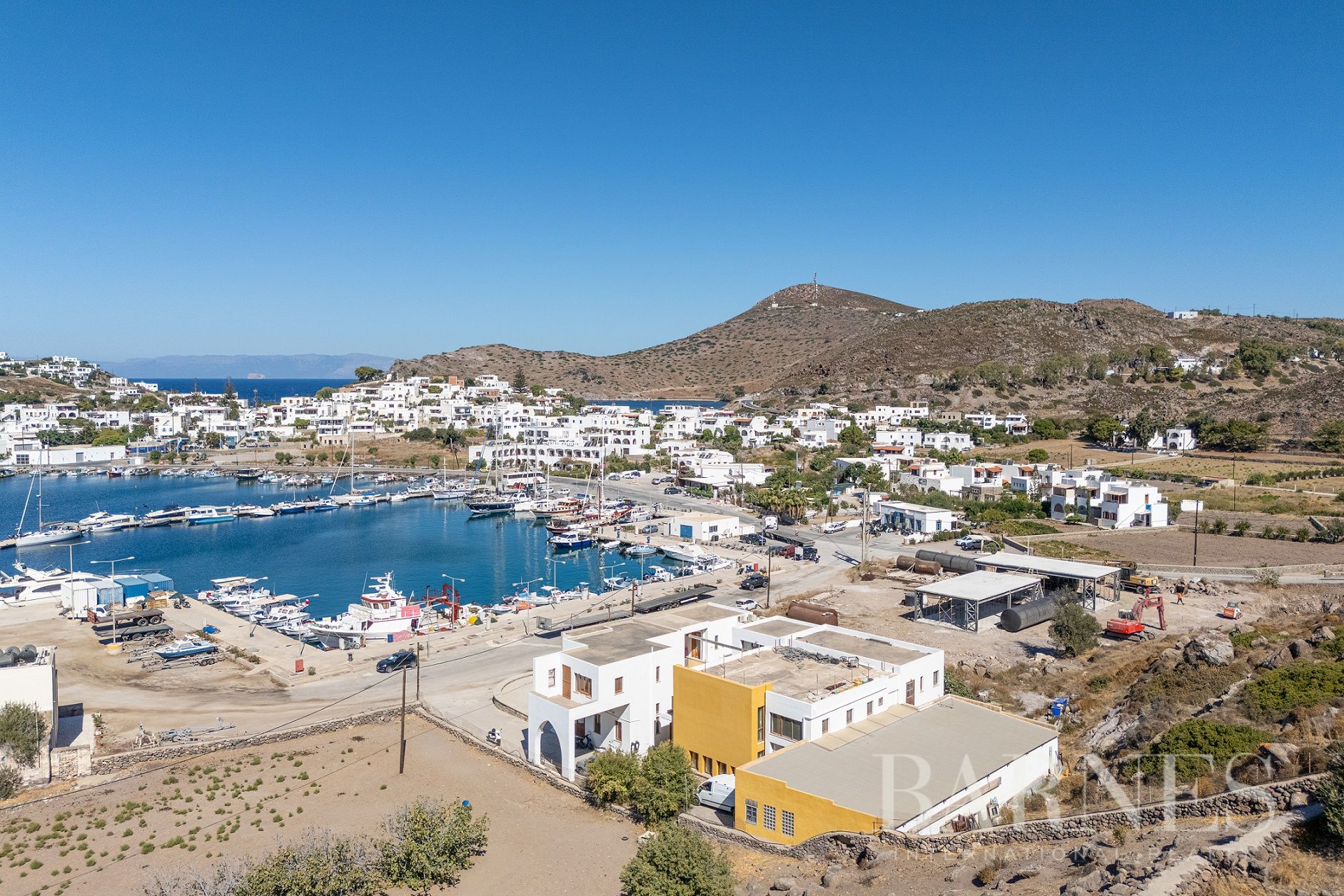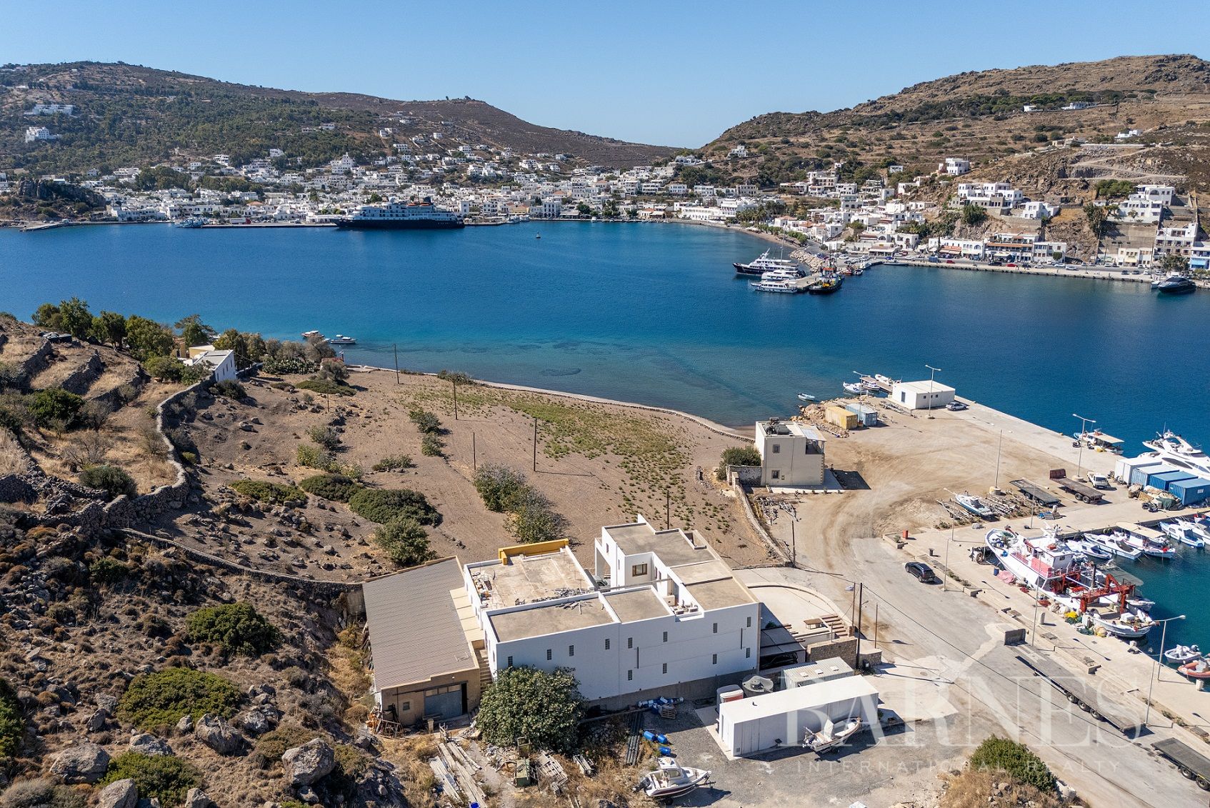 Имотът се намира до яхтеното пристанище на Патмос на изключително привилегировано място, а съседният парцел е незастрояем, което осигурява безпрепятствена гледка към морето.