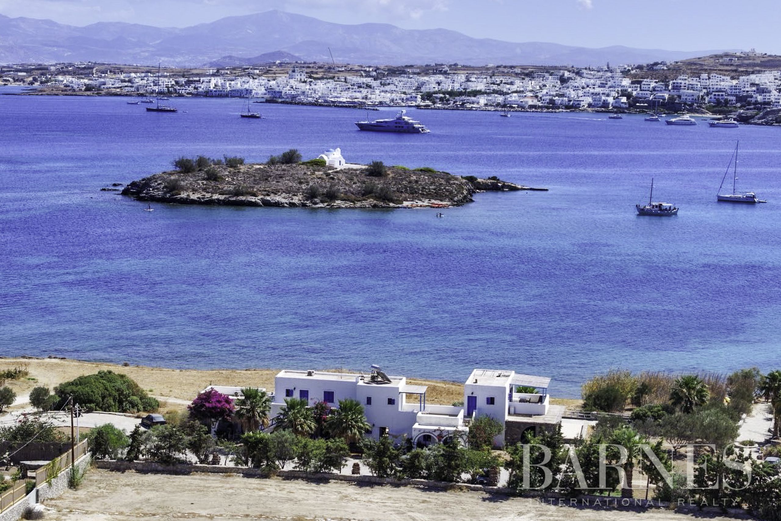 Имотът предлага директен достъп до морето и също така се радва на безпрепятствена гледка. Това е идеален избор за луксозен втори дом или дори за туристическа инвестиция, в една от най-известните дестинации на Цикладите.