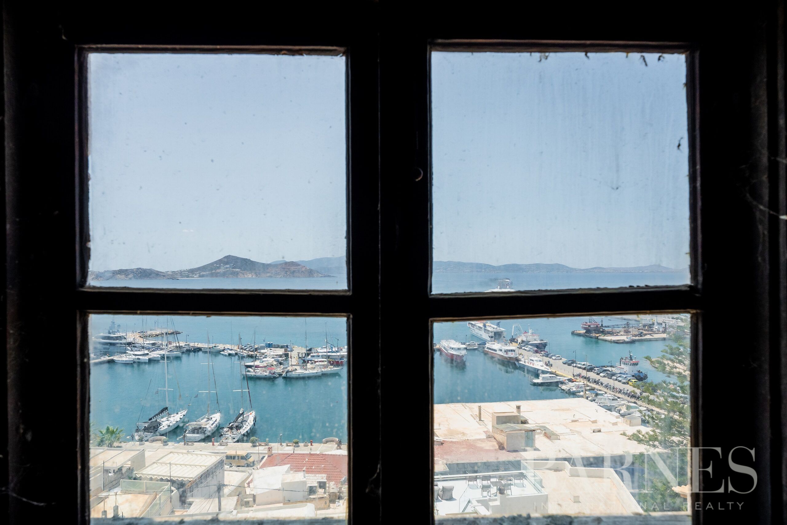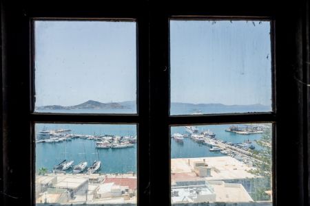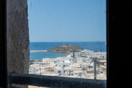 Както интериорът, така и покривът на кулата предлагат уникални гледки към пристанището на острова и безкрайното синьо на Егейско море.