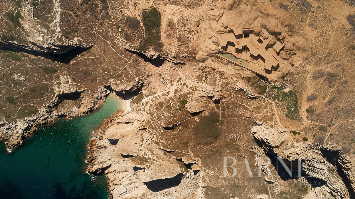 Вилата е на 2 нива, с обща площ от 349 кв.м., и е разположена върху привилегирован парцел от 5483 кв.м., който се простира до живописен, малък плаж.
