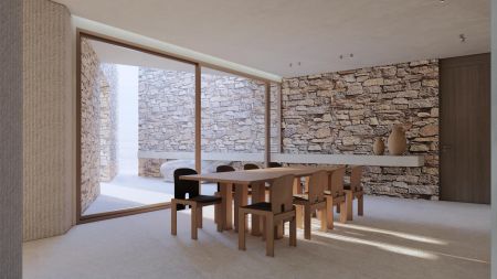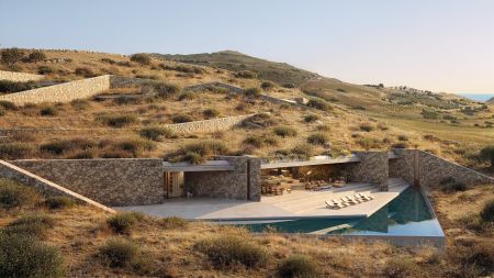 Изключителен имот, проектиран от известна архитектурна фирма, безпроблемно интегриран в очарователния пейзаж на Антипарос.